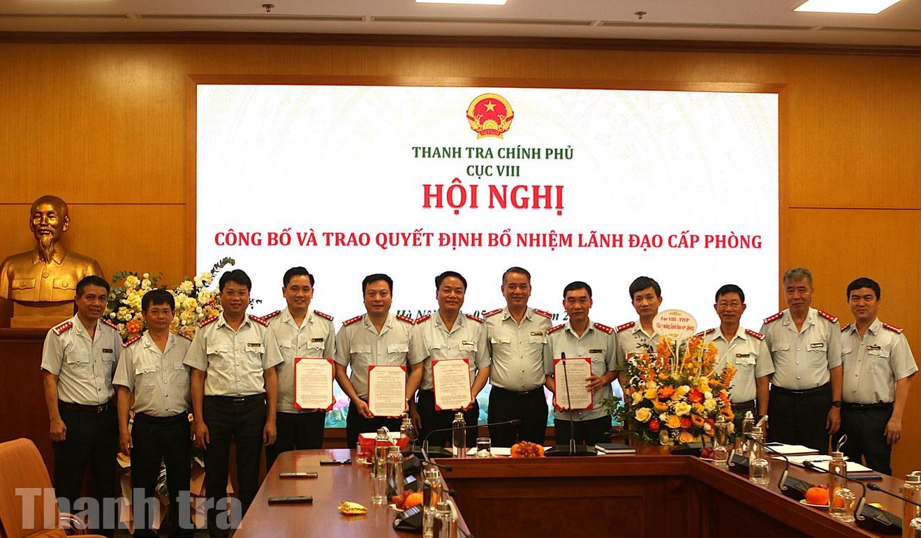 Lãnh đạo Cục VIII chúc mừng các trưởng phòng được lãnh đạo Thanh tra Chính phủ bổ nhiệm. Ảnh: Hoàng Nam