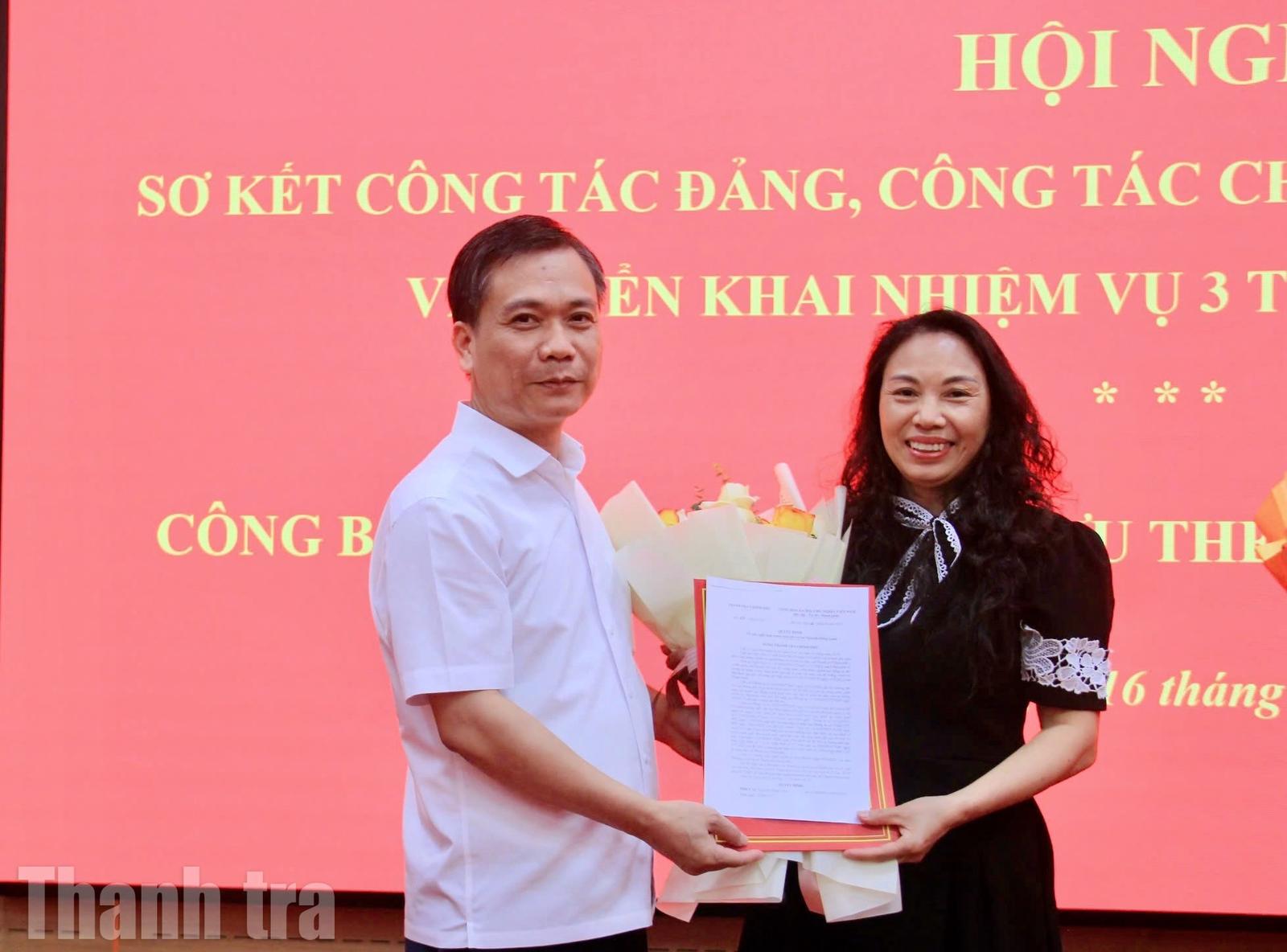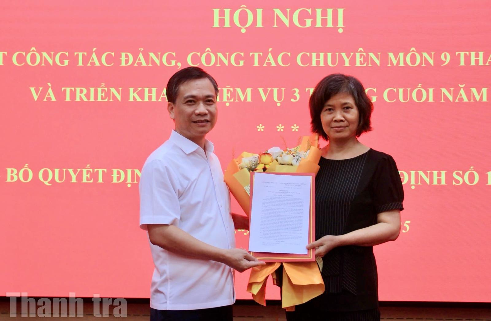 Cục trưởng Cục XI Nguyễn Mạnh Cường trao Quyết định số 823 về việc nghỉ hưu đối với bà Phạm Thị Thu Hà. Ảnh: T.T