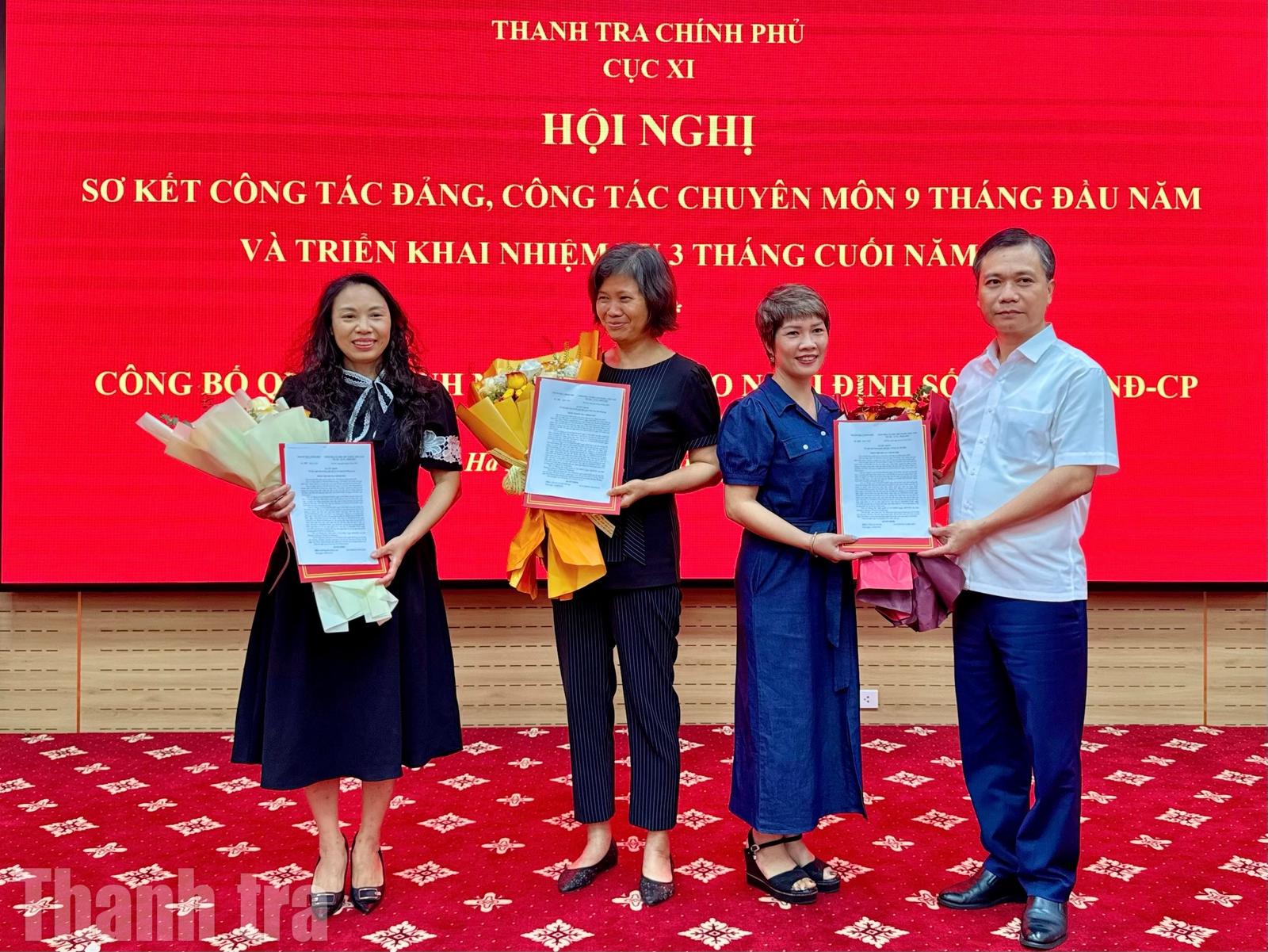 Tại buổi lễ, Phó Cục trưởng Cục XI Trần Kim Hậu đã công bố các quyết định của Tổng Thanh tra Chính phủ đối với 4 cán bộ, công chức thuộc Cục, gồm: Quyết định số 828 về việc nghỉ hưu trước tuổi đối với ông Tạ Văn Đại; Quyết định số 840 về việc nghỉ hưu trước tuổi đối với bà Bùi Thị Mai Phương; Quyết định số 823 về việc nghỉ hưu trước tuổi đối với bà Phạm Thị Thu Hà; Quyết định số 837 về việc nghỉ hưu trước tuổi đối với bà Nguyễn Hồng Loan.
