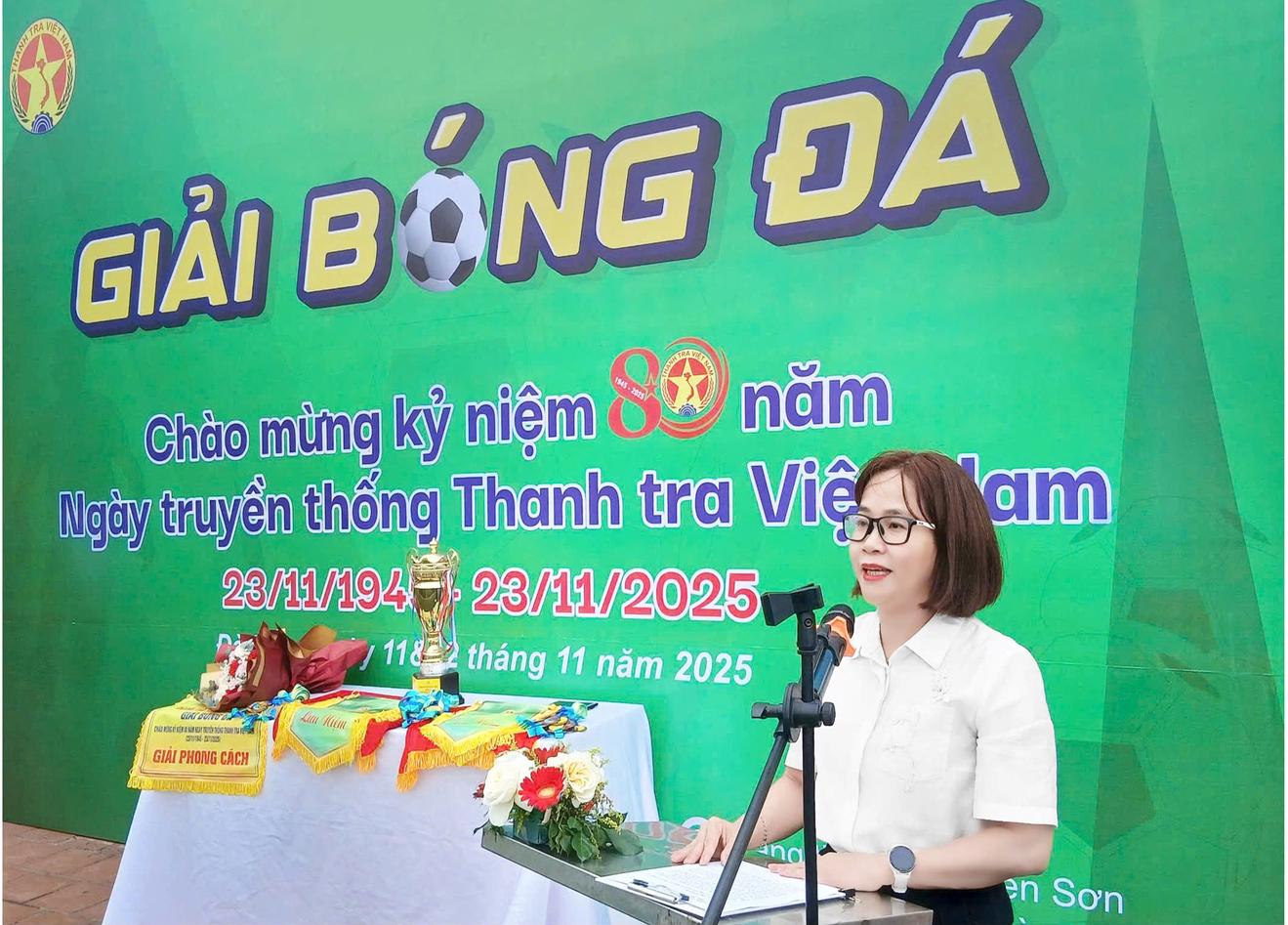 Phát biểu tại Lễ bế mạc, Chánh Thanh tra thành phố Trần Thị Kim Hoa biểu dương tinh thần thi đấu nhiệt huyết, đoàn kết và cống hiến của các đội bóng, khẳng định: “Giải đấu năm nay không chỉ tạo sân chơi thể thao bổ ích, rèn luyện sức khỏe mà còn góp phần gắn kết nội bộ, thúc đẩy phong trào thi đua, xây dựng tập thể Thanh tra thành phố đoàn kết, vững mạnh, hoàn thành tốt nhiệm vụ chính trị được giao.”