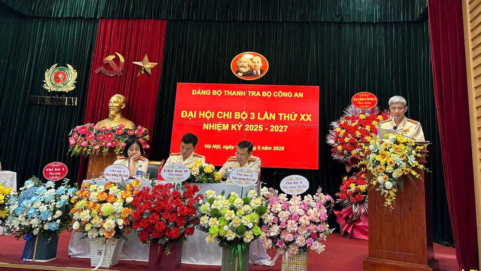 (Thanh tra) - Ngày 16/5/2025, Chi bộ Phòng Thanh tra việc giải quyết khiếu nại tố cáo thuộc Công an địa phương (Chi bộ 3) đã tổ chức thành công Đại hội lần thứ XX, nhiệm kỳ 2025 - 2027, với tinh thần “Dân chủ - Kỷ cương - Đoàn kết - Đổi mới - Phát triển”, theo đúng kế hoạch của Đảng ủy Thanh tra Bộ Công an về tổ chức đại hội Đảng các cấp.