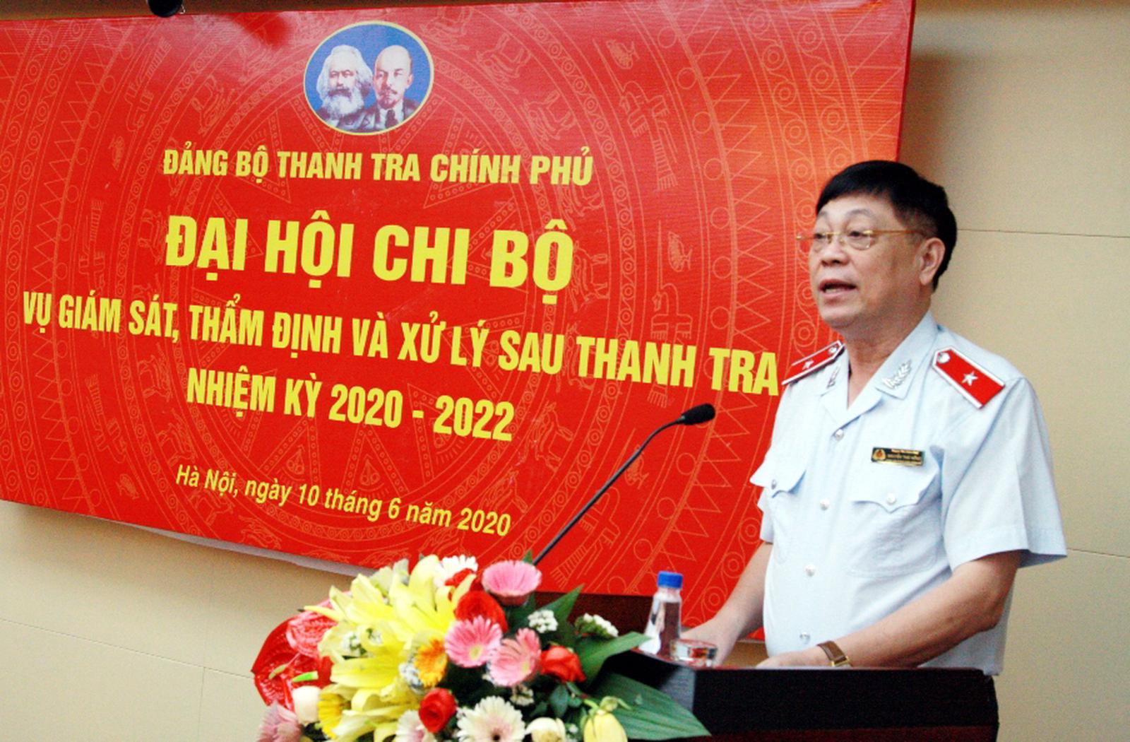 Phát biểu chỉ đạo tại Đại hội, Phó Bí thư Đảng ủy Thanh tra Chính phủ Nguyễn Thái Hồng bày tỏ tin tưởng, Chi bộ Vụ Giám sát, thẩm định và Xử lý sau thanh tra sẽ tiếp tục phát huy tinh thần thắng lợi của nhiệm kỳ vừa qua để hoàn thành mục tiêu nhiệm kỳ 2020-2025 với sự quyết tâm của tập thể cán bộ, đảng viên, góp phần hoàn thành nhiệm vụ chính trị chung của Đảng bộ Thanh tra Chính phủ.