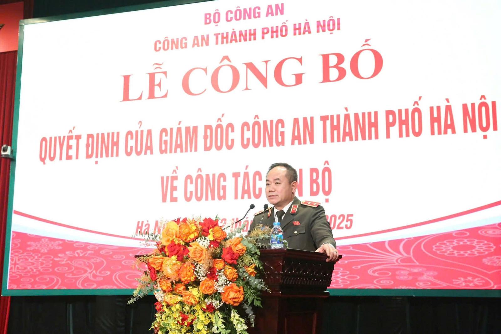 Trung tướng Nguyễn Thanh Tùng, Giám đốc Công an TP Hà Nội chủ trì lễ công bố các quyết định. Ảnh: CACC