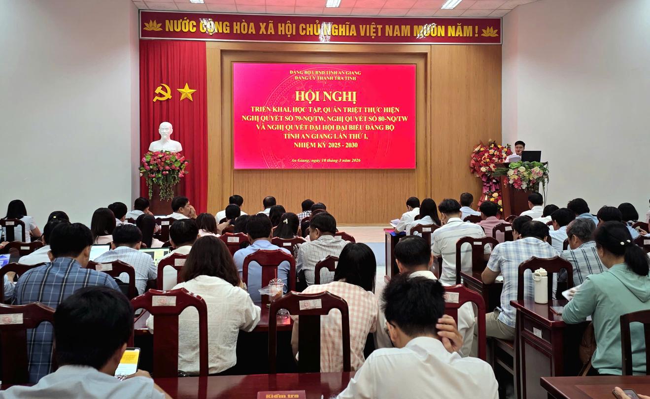 (Thanh tra) - Ngày 18/3, Đảng bộ Thanh tra tỉnh An Giang tổ chức hội nghị triển khai, quán triệt các nghị quyết của Bộ Chính trị và văn kiện Đại hội Đảng bộ tỉnh nhiệm kỳ 2025 - 2030, xác định đây là nhiệm vụ chính trị trọng tâm nhằm nâng cao năng lực, trách nhiệm của đội ngũ đảng viên, công chức.