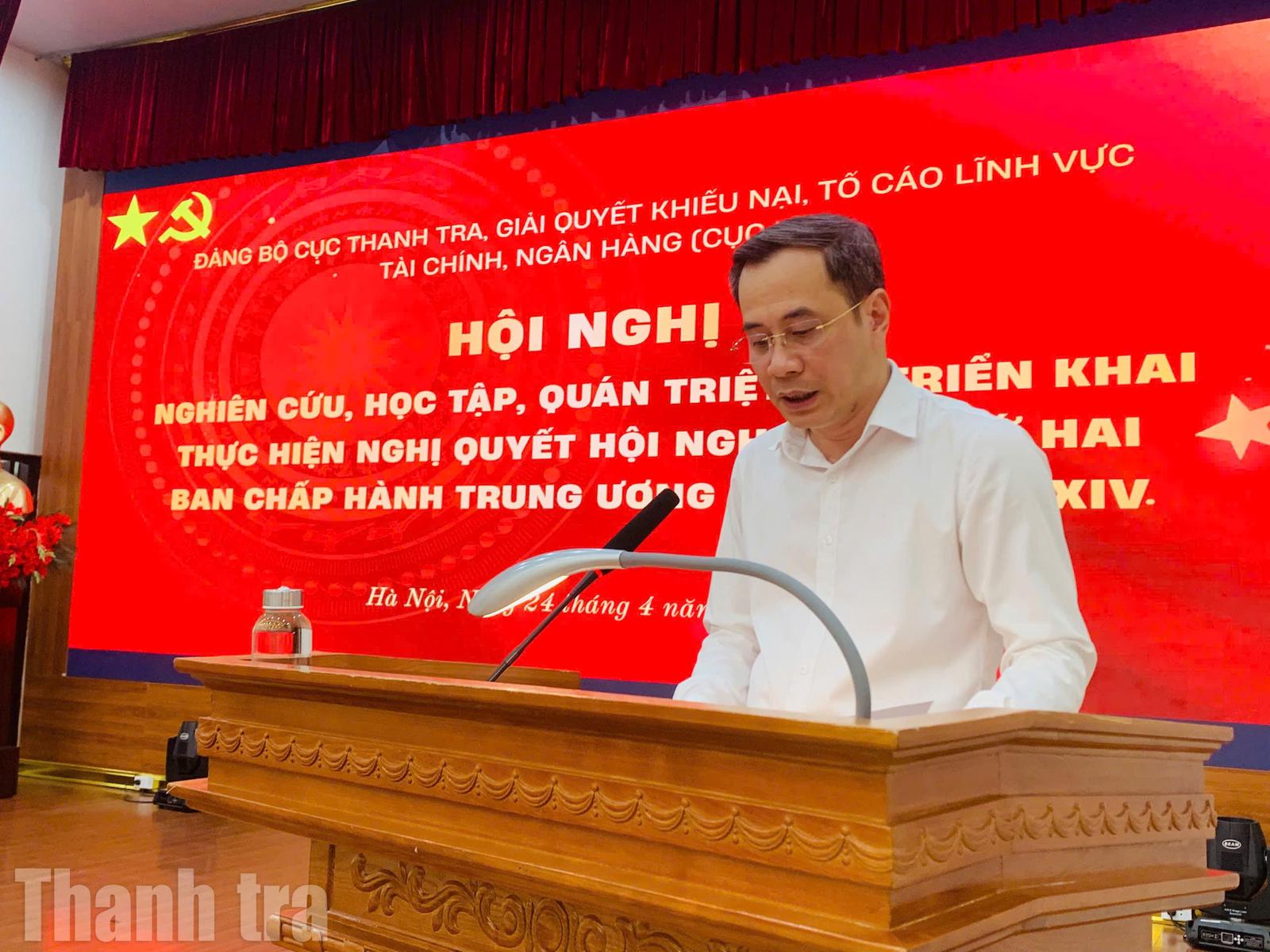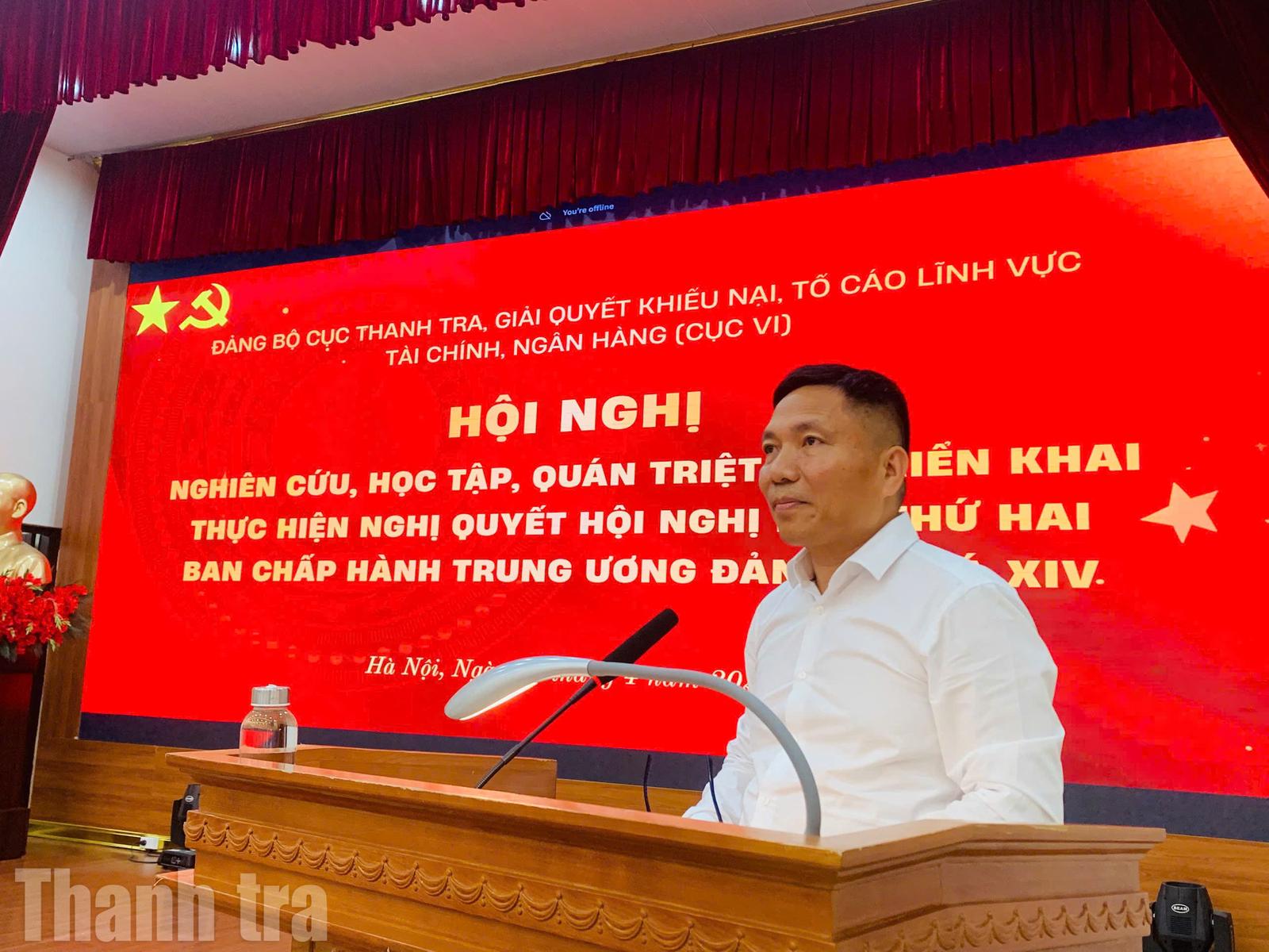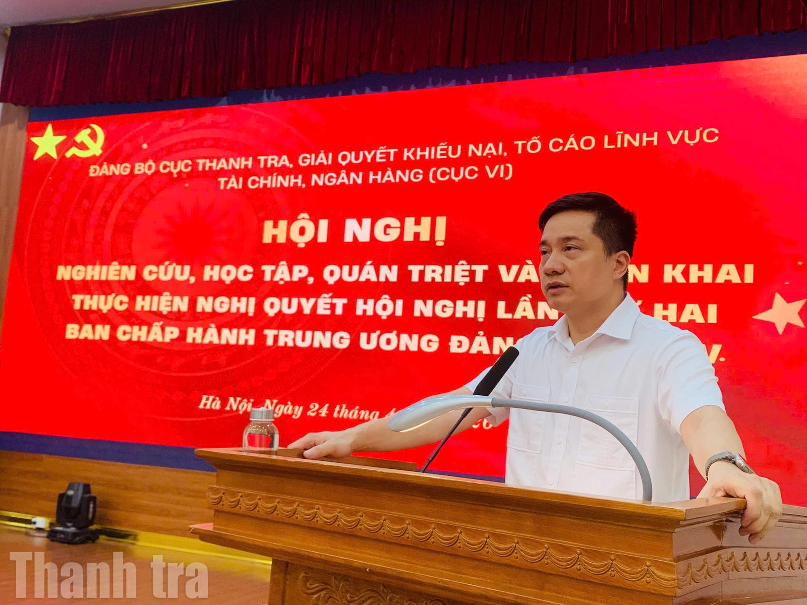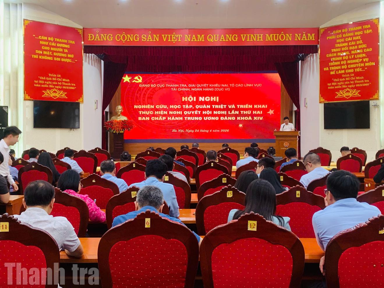 (Thanh tra) - Chiều nay (24/4), tại trụ sở Thanh tra Chính phủ, Đảng ủy Cục Thanh tra, giải quyết khiếu nại, tố cáo lĩnh vực tài chính, ngân hàng (Cục VI), Thanh tra Chính phủ đã tổ chức hội nghị nghiên cứu, học tập, quán triệt và triển khai Nghị quyết Hội nghị lần thứ hai của Ban chấp hành Trung ương Đảng Khóa XIV.