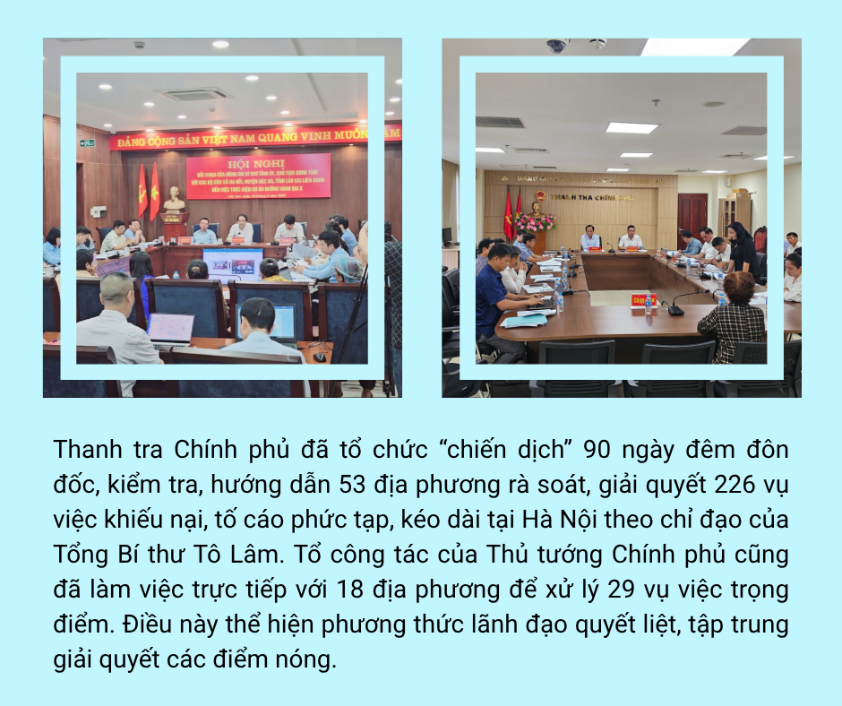 Bên cạnh đó, Thanh tra Chính phủ đã tham mưu Chính phủ triển khai chương trình công tác năm 2025 của Ban Chỉ đạo Trung ương về phòng, chống tham nhũng, lãng phí, tiêu cực; hướng dẫn thanh tra chuyên đề về quản lý, sử dụng cơ sở nhà đất; xây dựng cơ sở dữ liệu quốc gia về kiểm soát tài sản, thu nhập và hướng dẫn thực hiện kế hoạch xác minh tài sản, thu nhập.