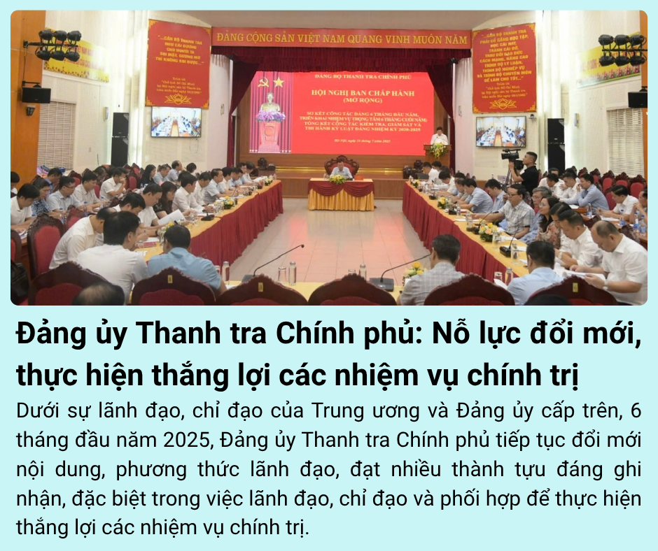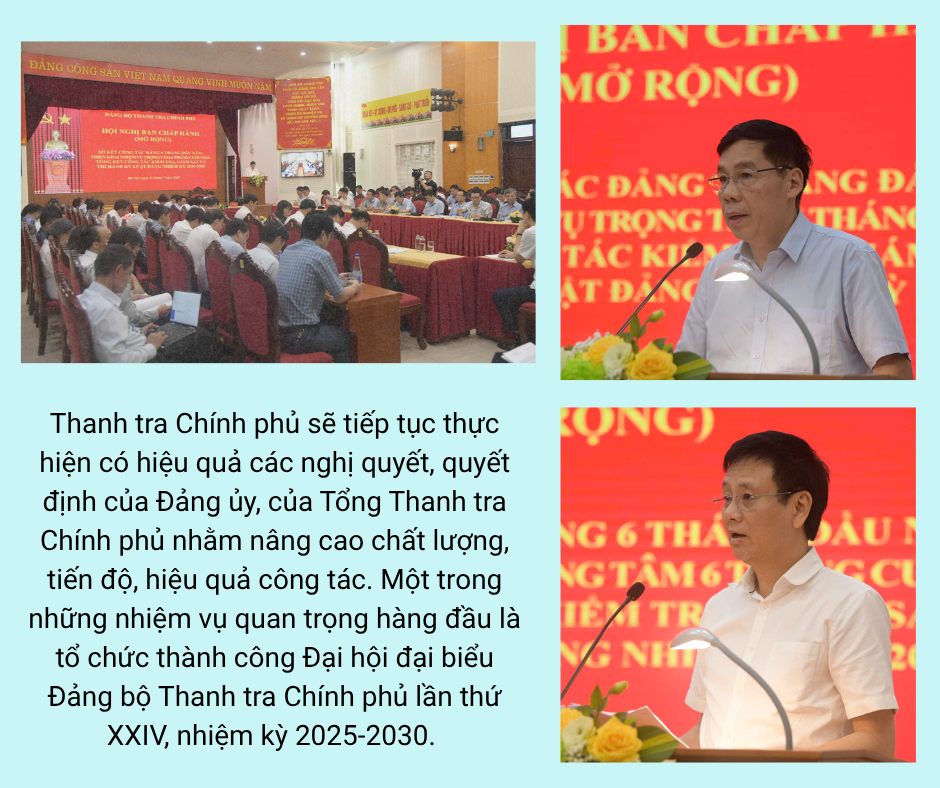 Với tinh thần đoàn kết, kỷ cương, đổi mới sáng tạo, Đảng bộ Thanh tra Chính phủ quyết tâm thực hiện thắng lợi các nhiệm vụ đề ra trong 6 tháng cuối năm 2025, góp phần xây dựng ngành Thanh tra ngày càng vững mạnh, đáp ứng yêu cầu phát triển đất nước trong giai đoạn mới.