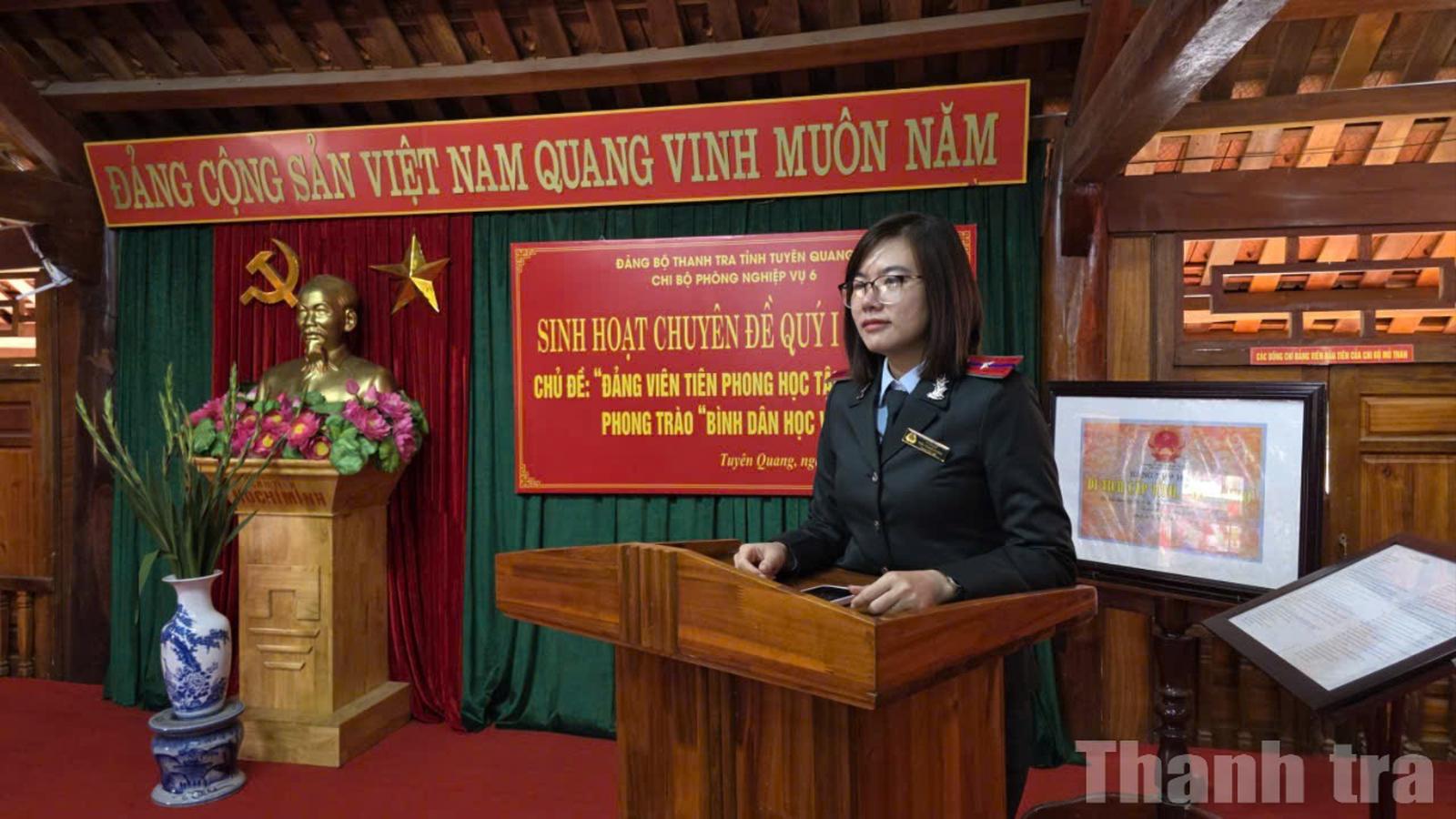 (Thanh tra) - Hưởng ứng phong trào “Bình dân học vụ số”, Chi bộ Phòng Nghiệp vụ 6, Đảng ủy Thanh tra tỉnh Tuyên Quang đã tổ chức sinh hoạt chuyên đề quý I năm 2026 về học tập, rèn luyện kỹ năng số cho đảng viên. Hoạt động này góp phần nâng cao nhận thức, phát huy vai trò tiên phong của cán bộ, đảng viên trong ứng dụng công nghệ, đáp ứng yêu cầu chuyển đổi số trong thực hiện nhiệm vụ chuyên môn.