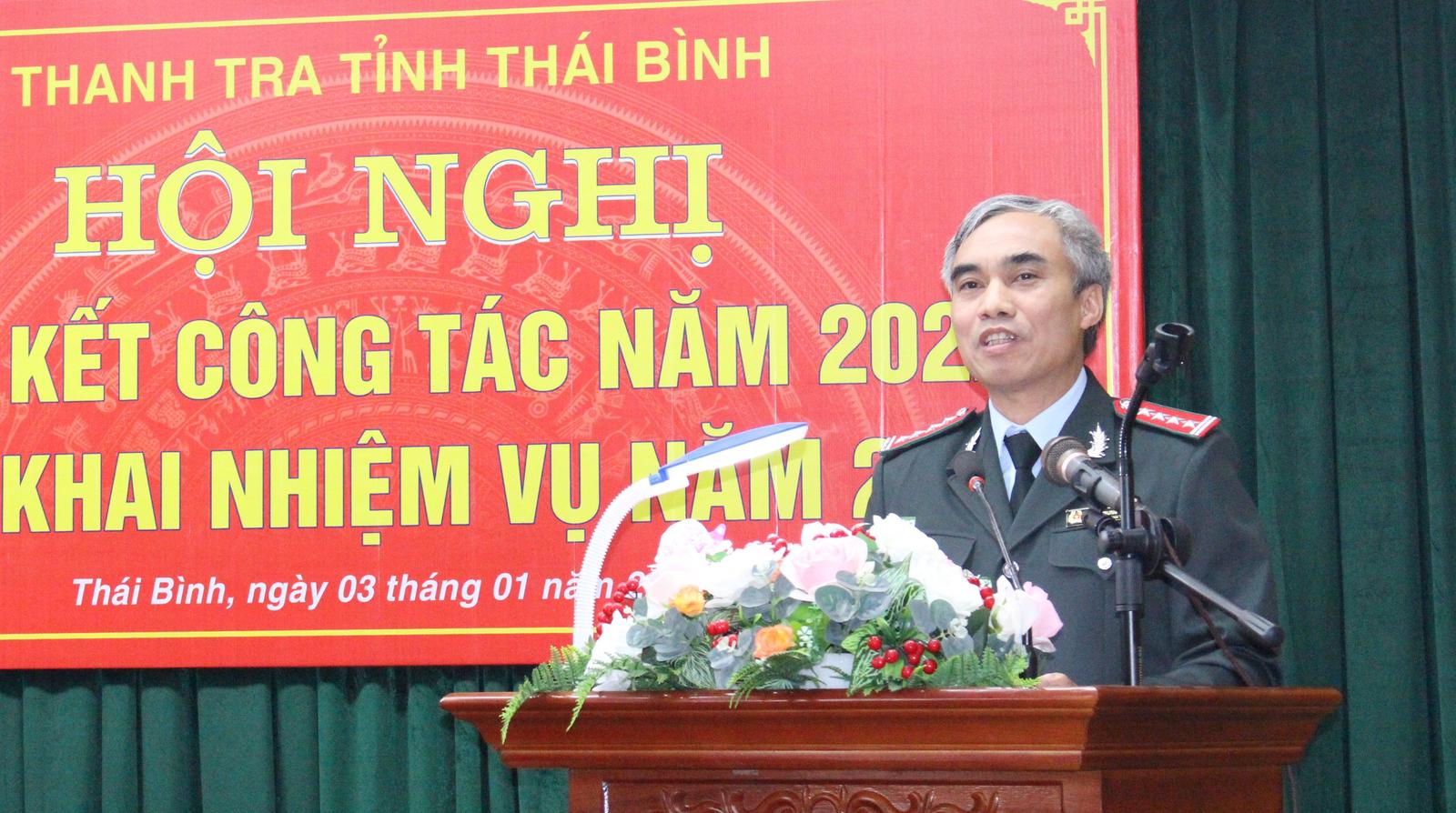 Chánh Thanh tra tỉnh Thái Bình Trần Trung Dũng khẳng định, năm 2023, toàn ngành Thanh tra tỉnh sẽ nỗ lực, cố gắng hoàn thành tốt nhiệm vụ, xứng đáng với niềm tin của lãnh đạo và nhân dân. Ảnh: Trọng Tài