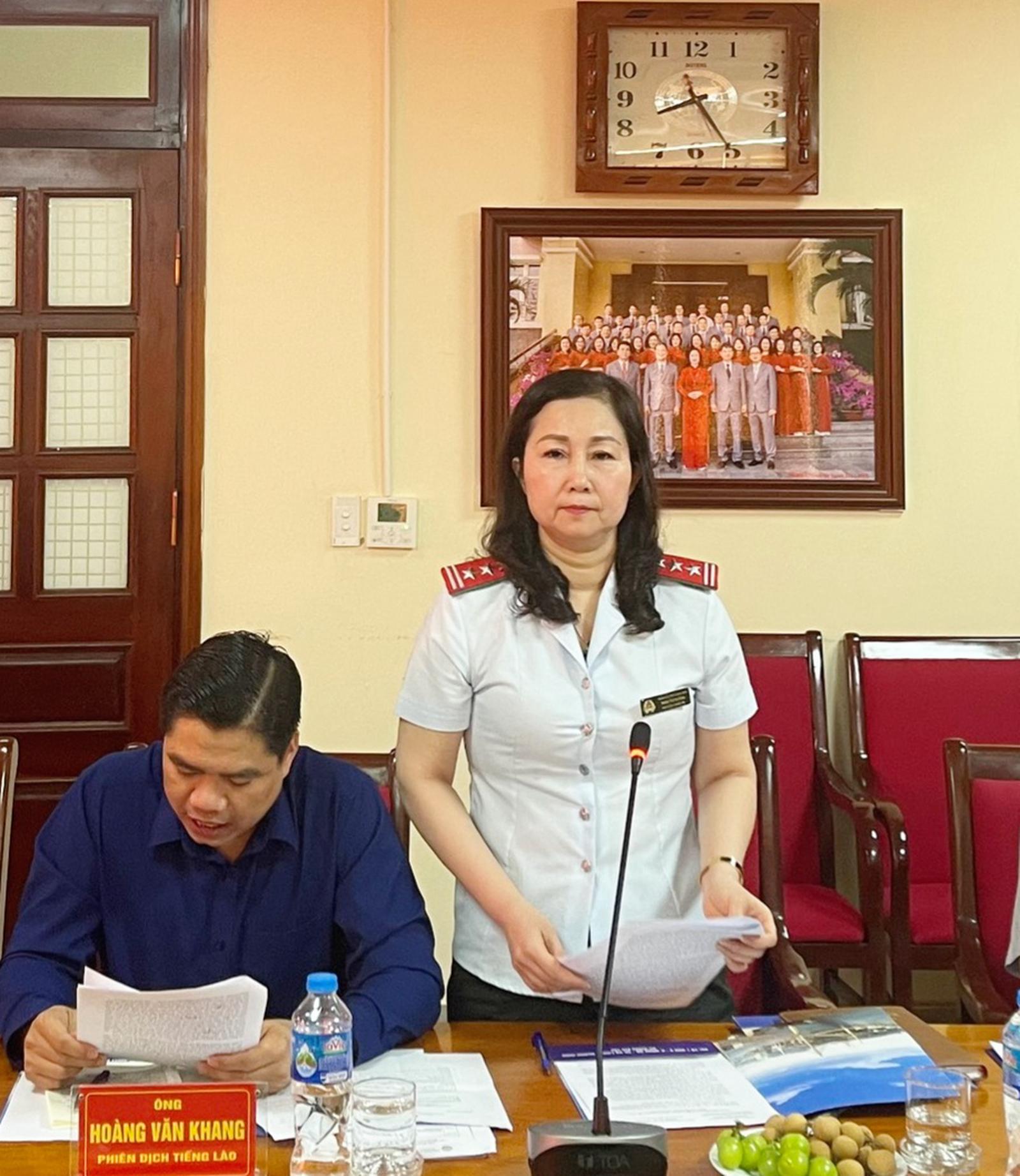 Phó Chánh Thanh tra tỉnh Trần Thị Hương chia sẻ kinh nghiệm tại buổi làm việc. Ảnh: TH