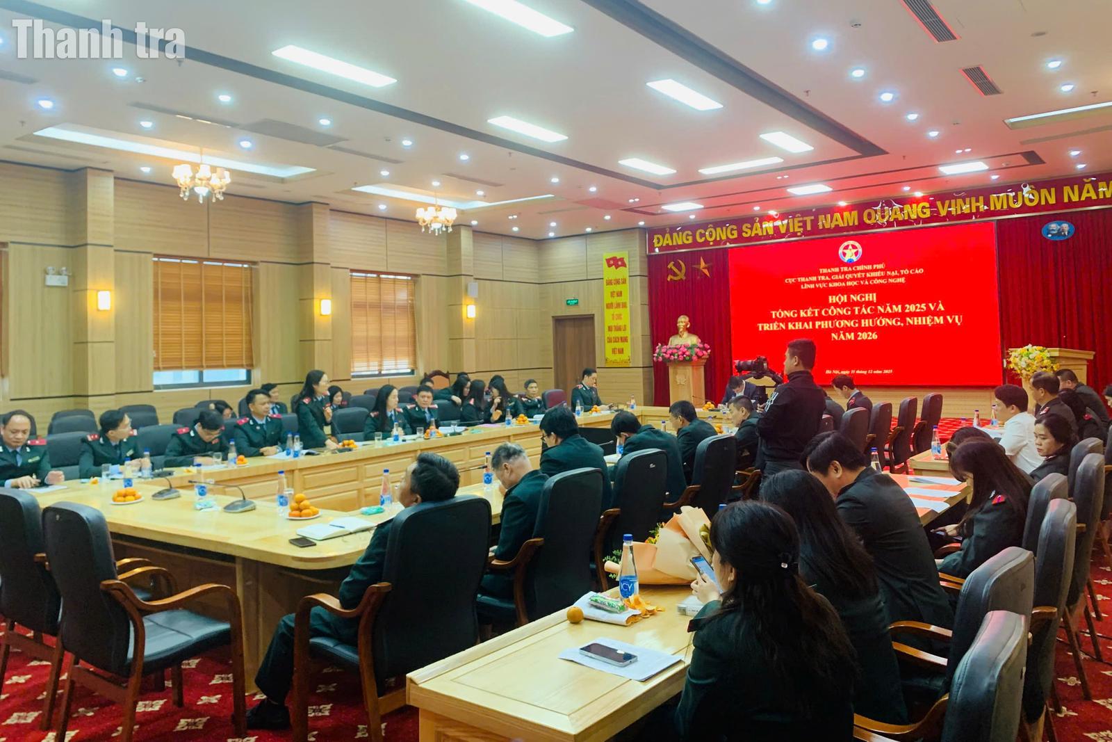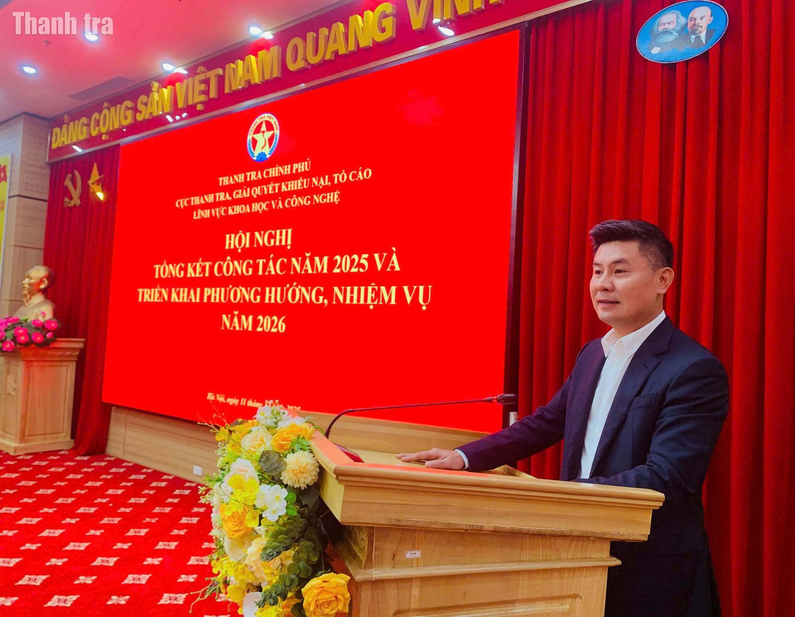 (Thanh tra) - Đó là chỉ đạo của Phó Tổng Thanh tra Nguyễn Văn Cường tại Hội nghị tổng kết công tác năm 2025, triển khai phương hướng, nhiệm vụ năm 2026 của Cục Thanh tra, giải quyết khiếu nại, tố cáo lĩnh vực khoa học và công nghệ (Cục XII), Thanh tra Chính phủ được tổ chức sáng nay (11/12).