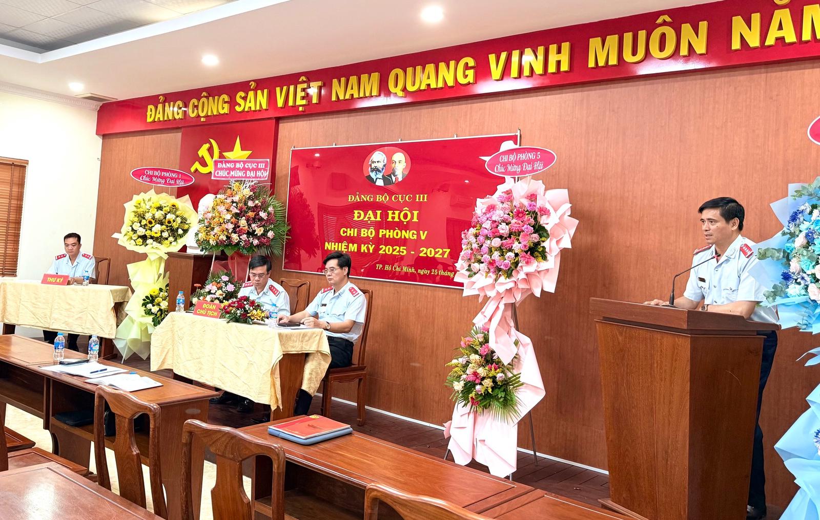 Đại hội Chi bộ Phòng 5 nhiệm kỳ 2025-2027 khẳng định quyết tâm của toàn thể đảng viên, công chức phát huy thành tích, khắc phục khuyết điểm, đoàn kết, thống nhất, quyết tâm nâng cao năng lực lãnh đạo và sức chiến đấu của Đảng, xây dựng Chi bộ trong sạch, vững mạnh...