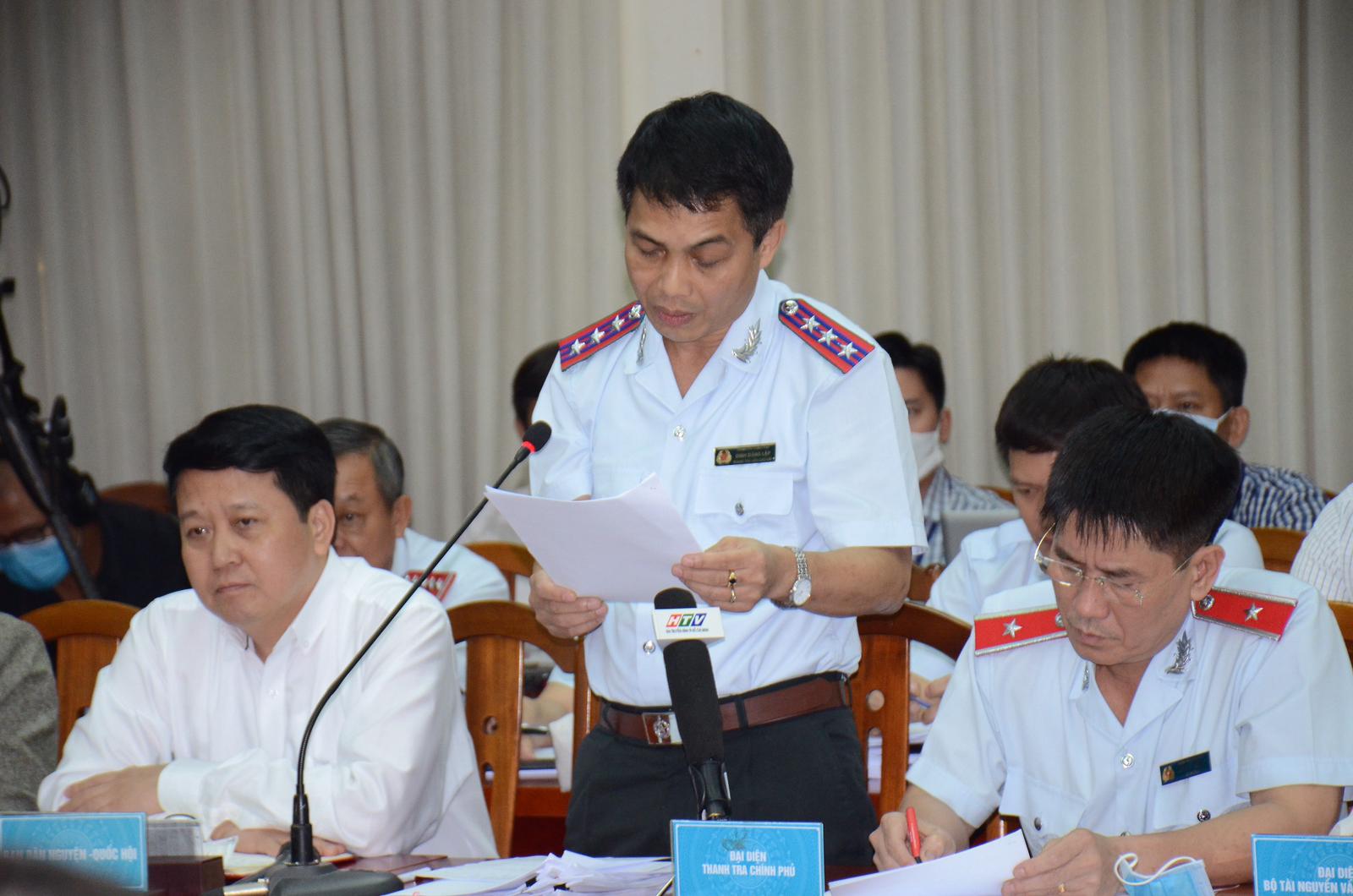 Đại diện tổ kiểm tra liên ngành trình bày dự thảo báo cáo kiểm tra, rà soát liên quan đến khiếu nại ranh quy hoạch 5 khu phố thuộc 3 phường thuộc Khu đô thị mới Thủ Thiêm. (Ảnh: TTBC)
