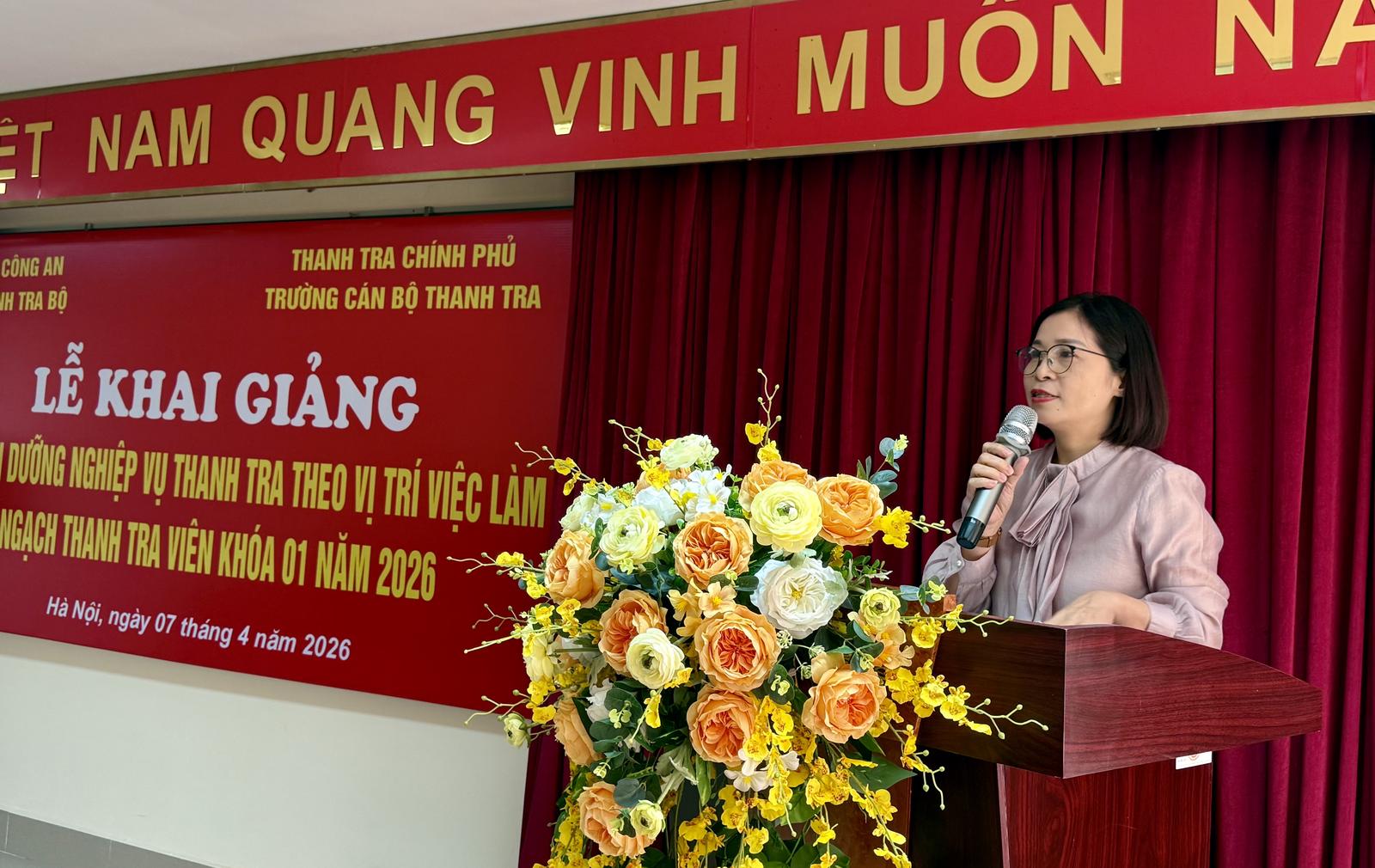 Phát biểu tại Lễ khai giảng, ThS Phạm Thị Thu Hiền, Phó Hiệu trưởng Trường Cán bộ Thanh tra nhấn mạnh, trong bối cảnh cải cách hành chính, xây dựng Nhà nước pháp quyền và đẩy mạnh phòng, chống tham nhũng, tiêu cực, vai trò của công tác thanh tra ngày càng được khẳng định.