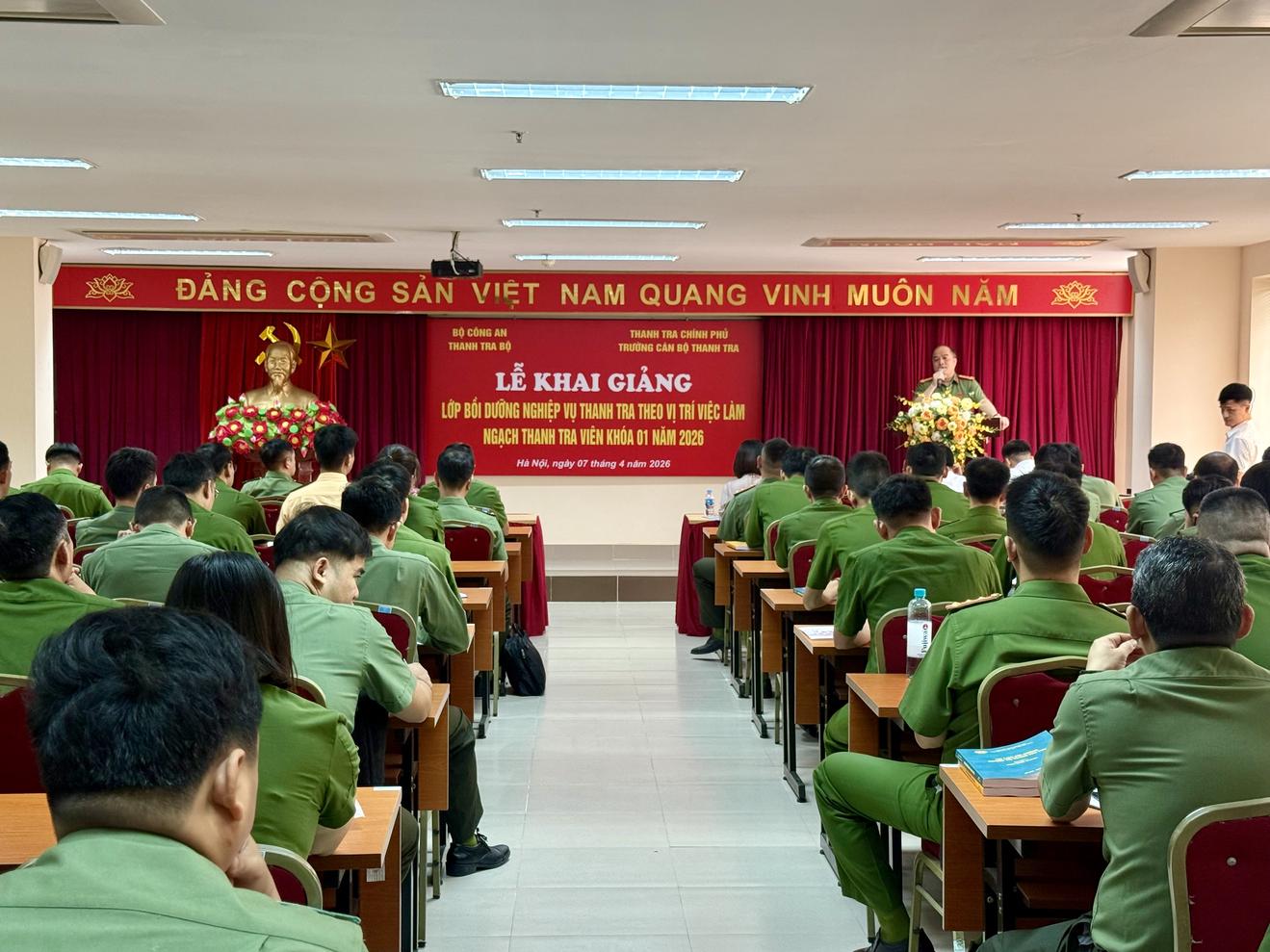 (Thanh tra) - Sáng 7/4, tại Trường Cán bộ Thanh tra, gần 100 cán bộ Thanh tra Bộ Công an tham gia khai giảng lớp bồi dưỡng nghiệp vụ thanh tra theo vị trí việc làm ngạch thanh tra viên Khoá 01/2026.
