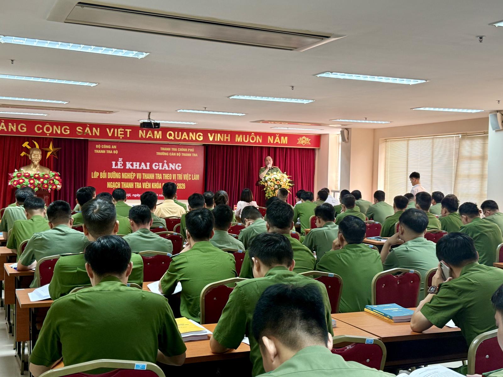 Tham dự có Phó Hiệu trưởng Trường Cán bộ Thanh tra Phạm Thị Thu Hiền; Phó Chánh Thanh tra Bộ Công an, Đại tá Trần Văn Thư; đại diện các đơn vị chức năng và toàn thể học viên tham gia khóa học. Đây là hoạt động thiết thực nhằm chuẩn hóa kỹ năng, nghiệp vụ, nâng cao năng lực cho đội ngũ cán bộ thanh tra trong lực lượng Công an nhân dân, đáp ứng yêu cầu nhiệm vụ trong tình hình mới.