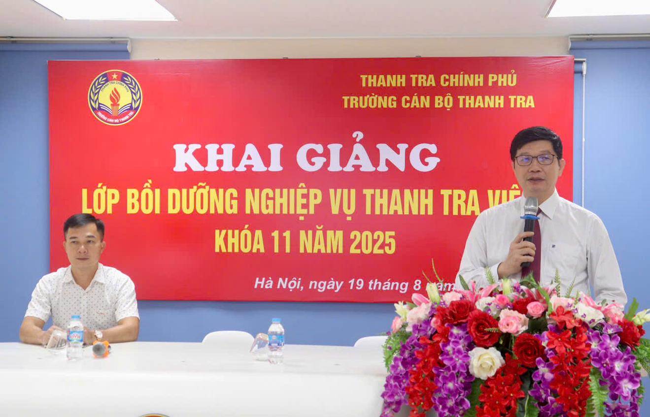 (Thanh tra) - Ngày 19/8, Trường Cán bộ Thanh tra tổ chức khai giảng lớp bồi dưỡng nghiệp vụ thanh tra viên khóa 11 năm 2025 cho gần 100 học viên là công chức thanh tra các tỉnh, thành phố trong cả nước. Lớp học được tổ chức trực tuyến (online) trong giờ hành chính các ngày làm việc từ 19/8-3/10.