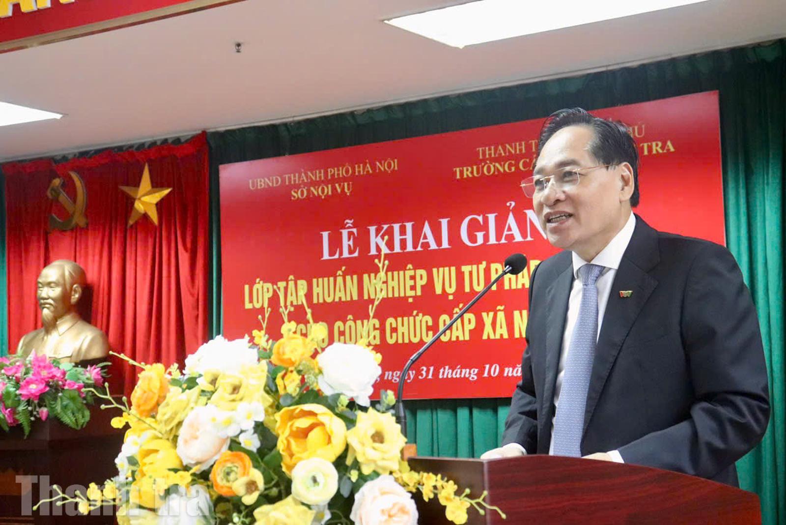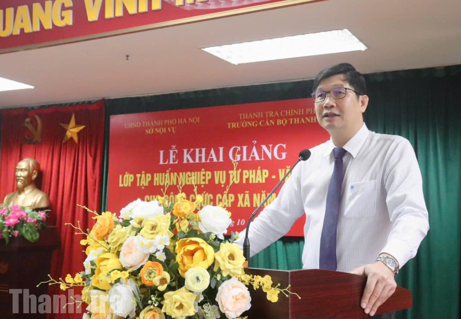 Phát biểu tại lễ khai giảng, ông Đinh Mạnh Hùng, Phó Giám đốc Sở Nội vụ Hà Nội cho biết, thực hiện Kế hoạch đào tạo bồi dưỡng năm 2025, được sự uỷ quyền củạ UBND thành phố, Sở Nội vụ phối hợp với Trường Cán bộ Thanh tra tổ chức lớp tập huấn nghiệp vụ tư pháp - văn phòng cho công chức phụ trách công tác tư pháp - văn phòng của UBND các xã, phường thuộc thành phố Hà Nội.