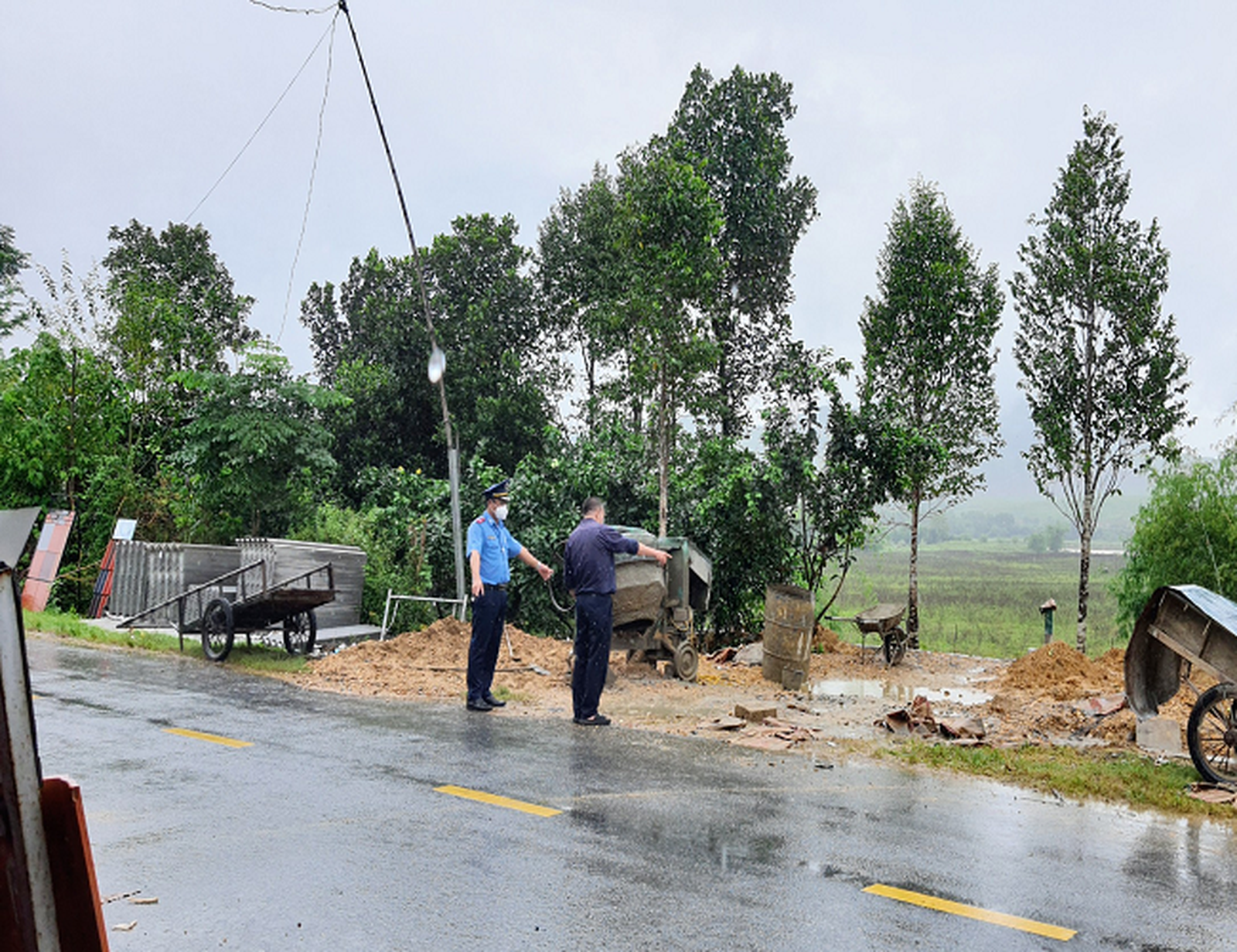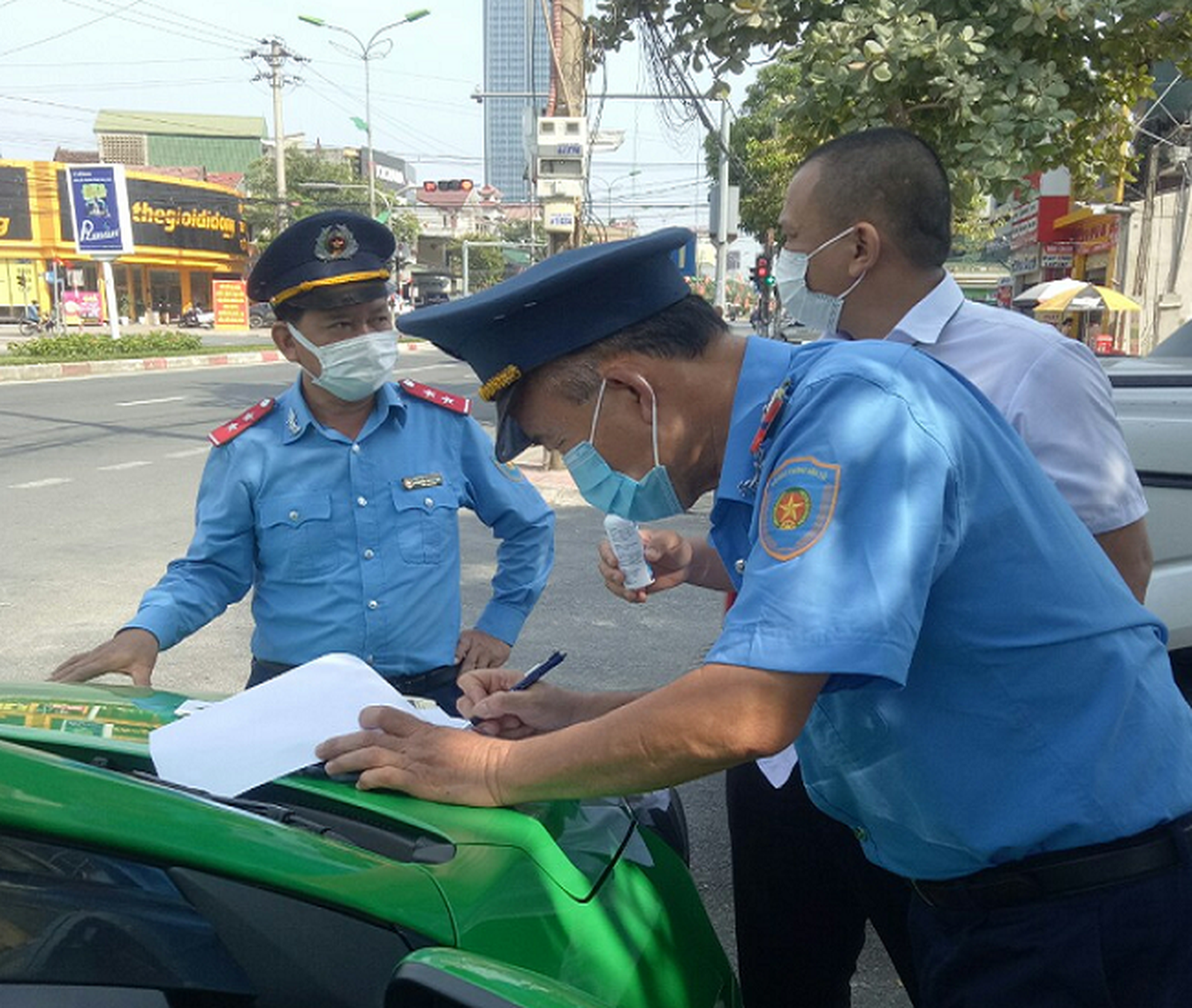 Lực lượng Thanh tra GTVT tham gia tại chốt trực Covid-19. Ảnh: TQ