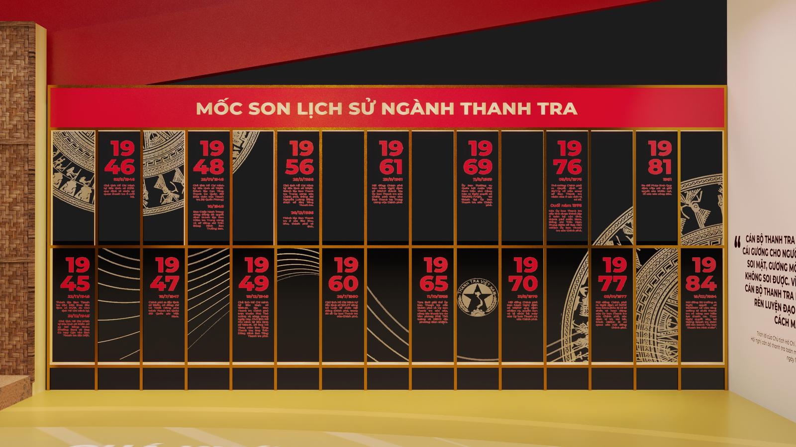 Không gian của giai đoạn khởi nguyên được thiết kế với tông màu vàng son và nâu trầm, gợi nhắc về một quá khứ gian khổ nhưng đầy khí phách. Nổi bật giữa không gian là Bức tường Di sản, nơi lưu giữ những văn bản pháp lý, sự kiện và hình ảnh tiêu biểu về sự ra đời và đóng góp của ngành Thanh tra trong những thập kỷ đầu tiên.