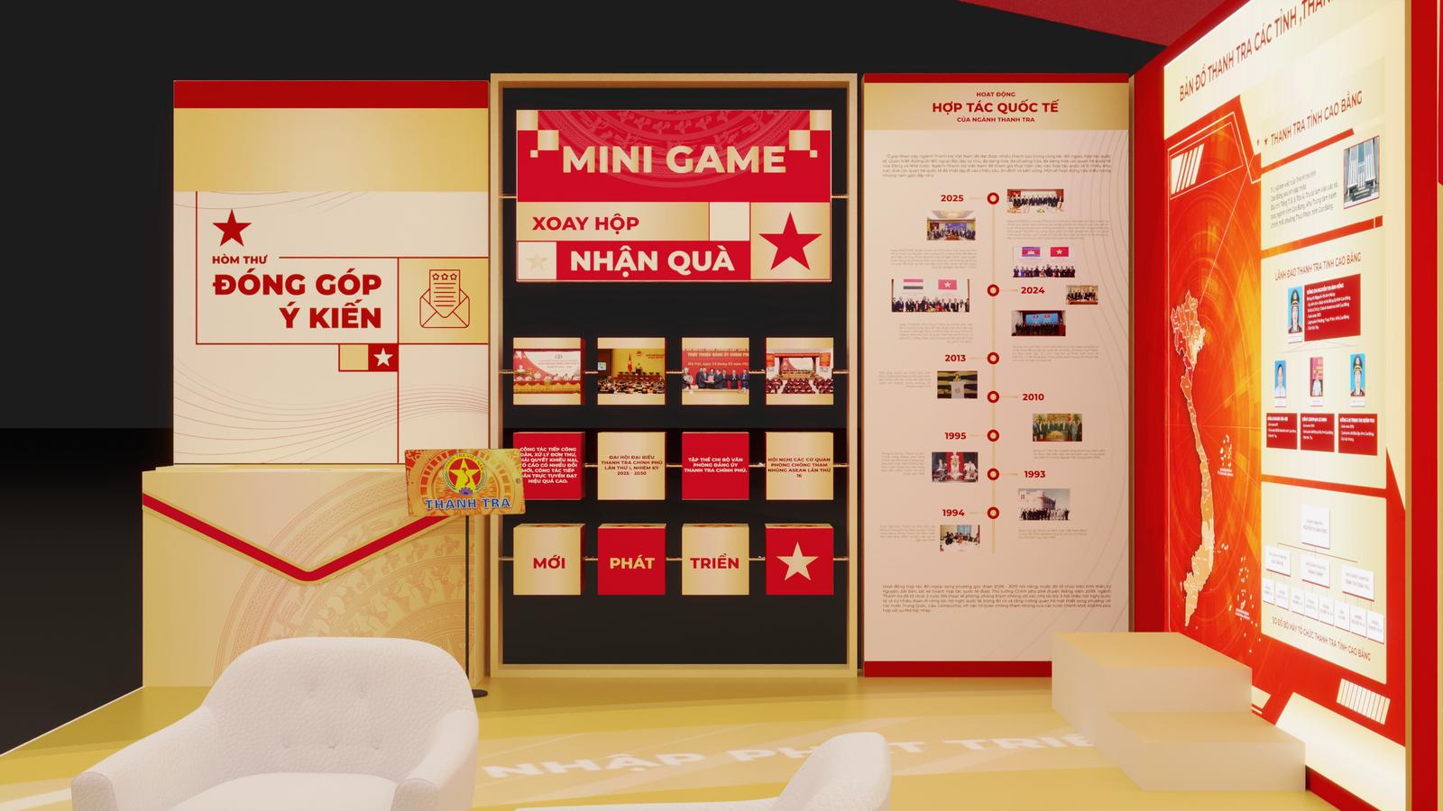 Không gian kết thúc mang thông điệp kết nối, nơi trưng bày những dấu ấn hợp tác quốc tế và mời gọi sự tương tác từ khách tham quan. Mọi người có thể chụp ảnh lưu niệm, tham gia mini-game vui nhộn hoặc viết lại những lời nhắn gửi, đóng góp ý kiến cho ngành Thanh tra. Đây chính là nơi niềm tin được lan tỏa, khát vọng được bồi đắp và tương lai được khẳng định.