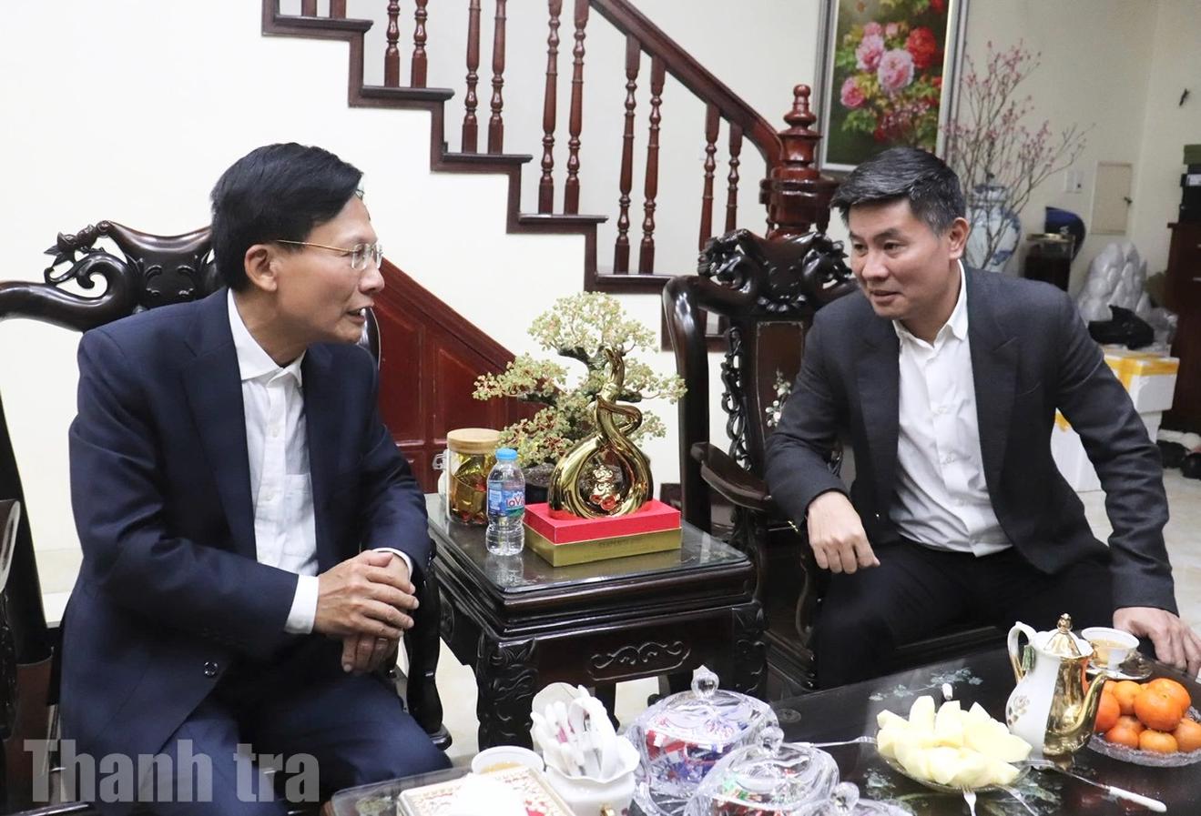 Phó Tổng Thanh tra Chính phủ Nguyễn Văn Cường thăm hỏi, chia sẻ với nguyên Phó Tổng Thanh tra Chính phủ Bùi Ngọc Lam trong không khí chuẩn bị đón Tết Nguyên đán. Ảnh: Trang Anh