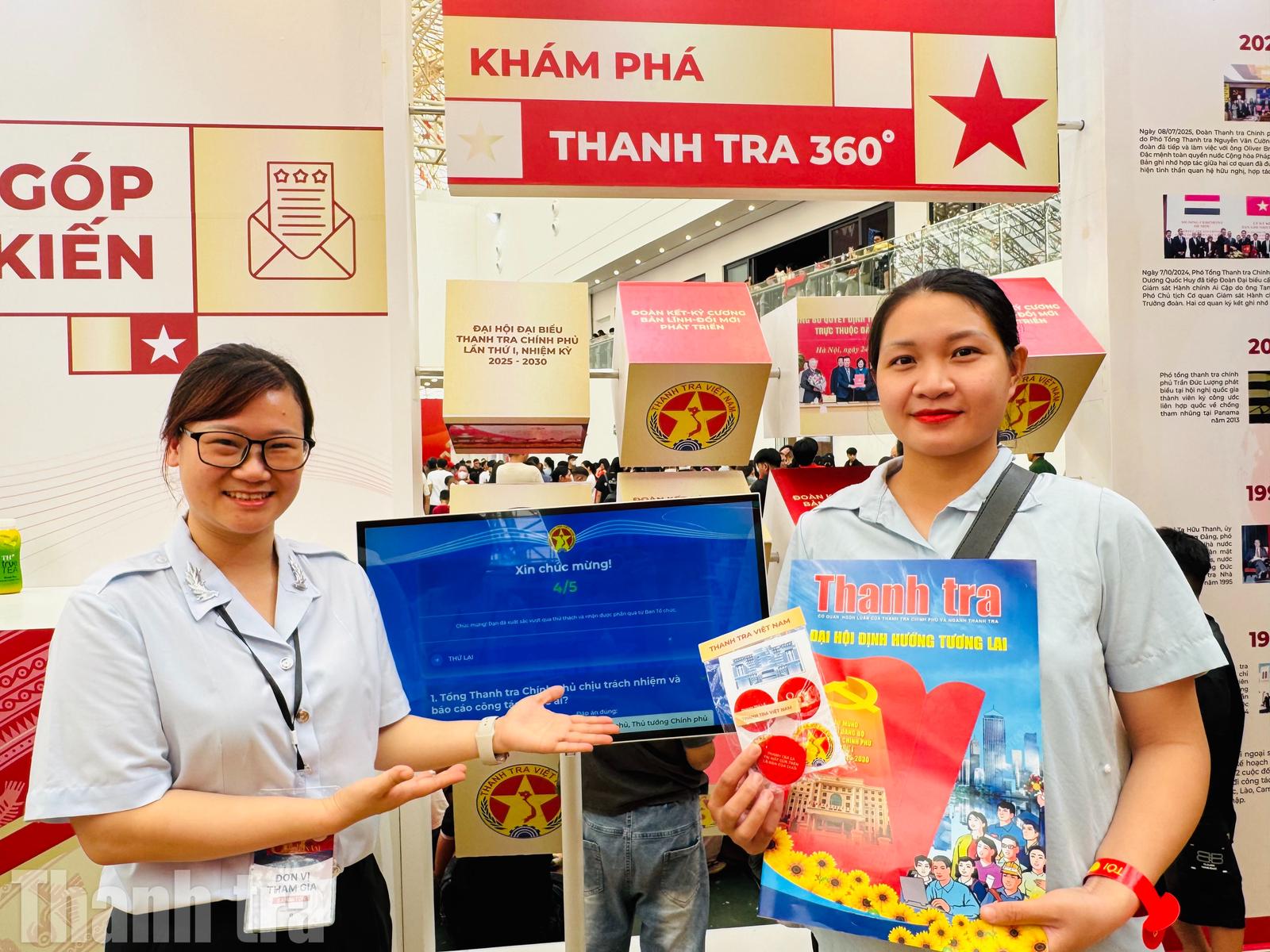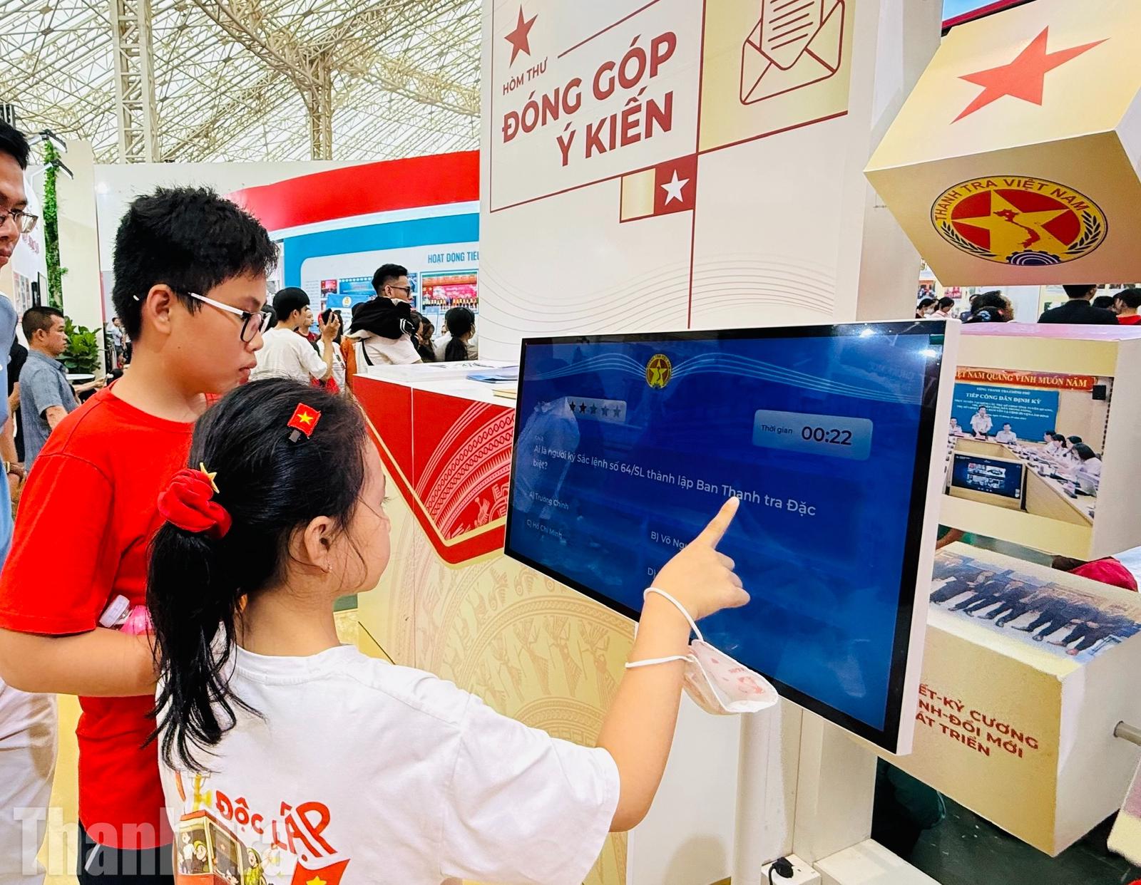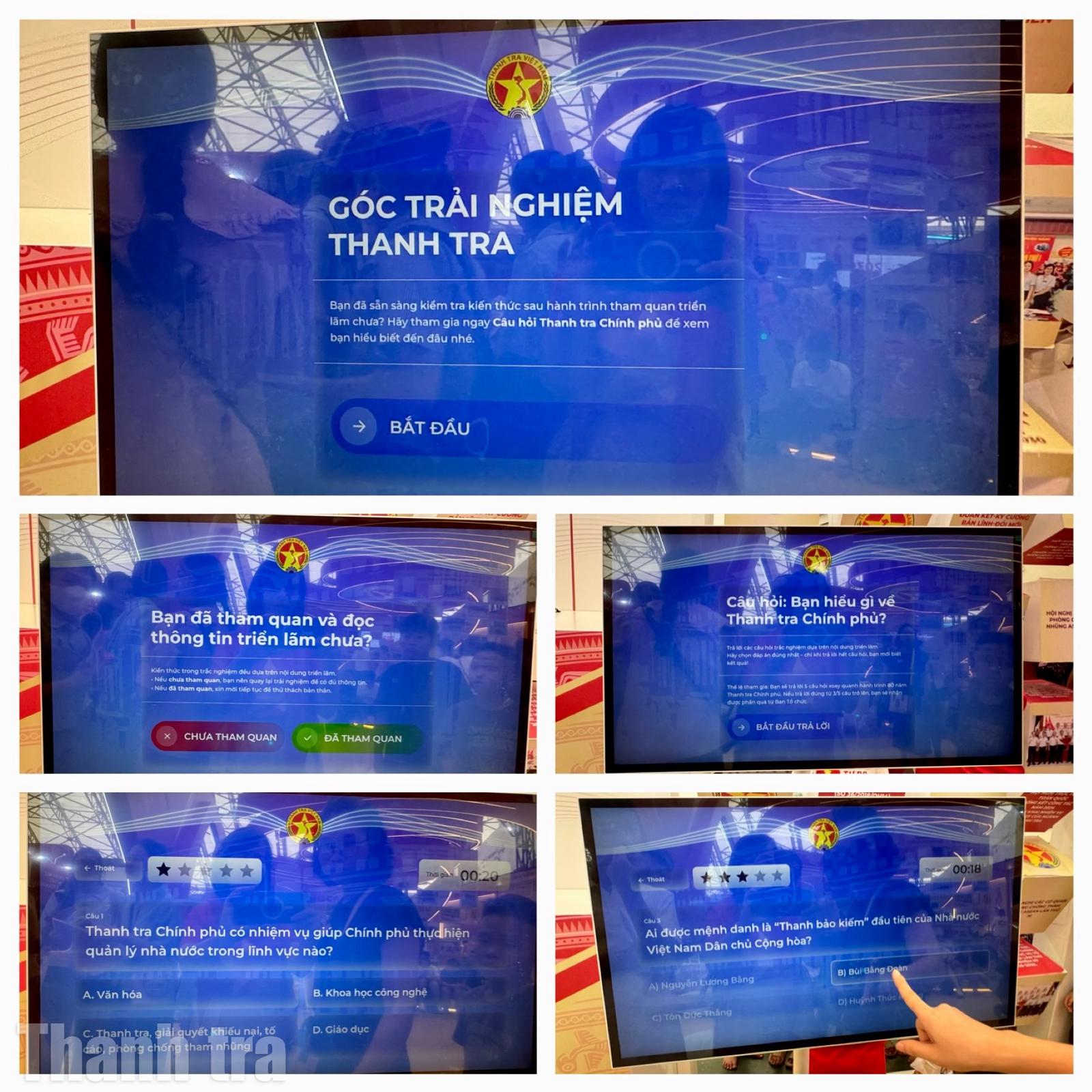 Tại đây, khách tham quan tham gia trả lời hệ thống các câu hỏi ngẫu nhiên về cơ cấu tổ chức, văn bản quy phạm pháp luật, vị trí, chức năng, nhiệm vụ quyền hạn, các vụ việc điển hình,... của ngành Thanh tra kể từ khi thành lập đến nay.