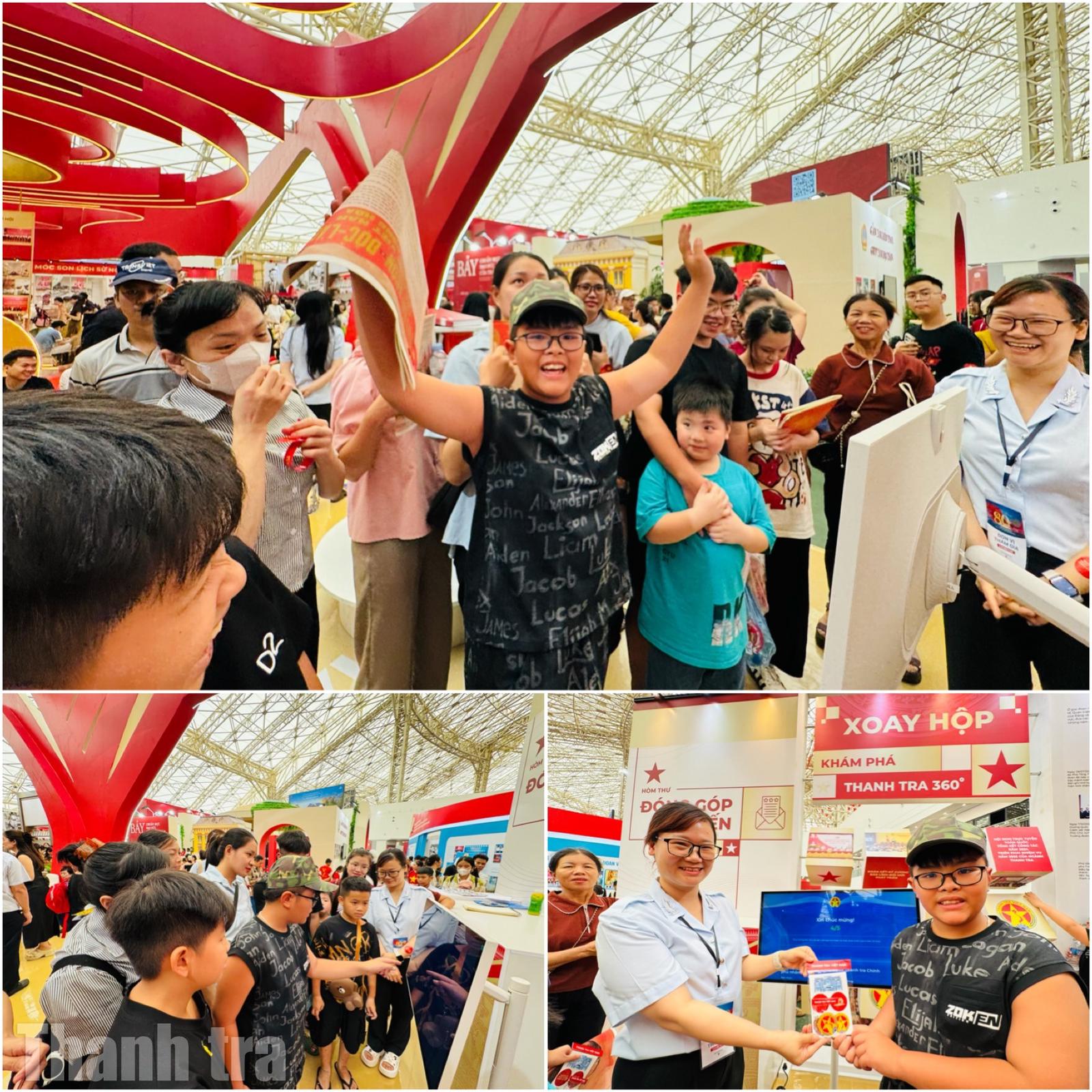 Người chơi bày tỏ sự vui mừng khi trả lời đúng hết hệ thống câu hỏi trong góc trải nghiệm thanh tra. Ảnh: Hải Lương