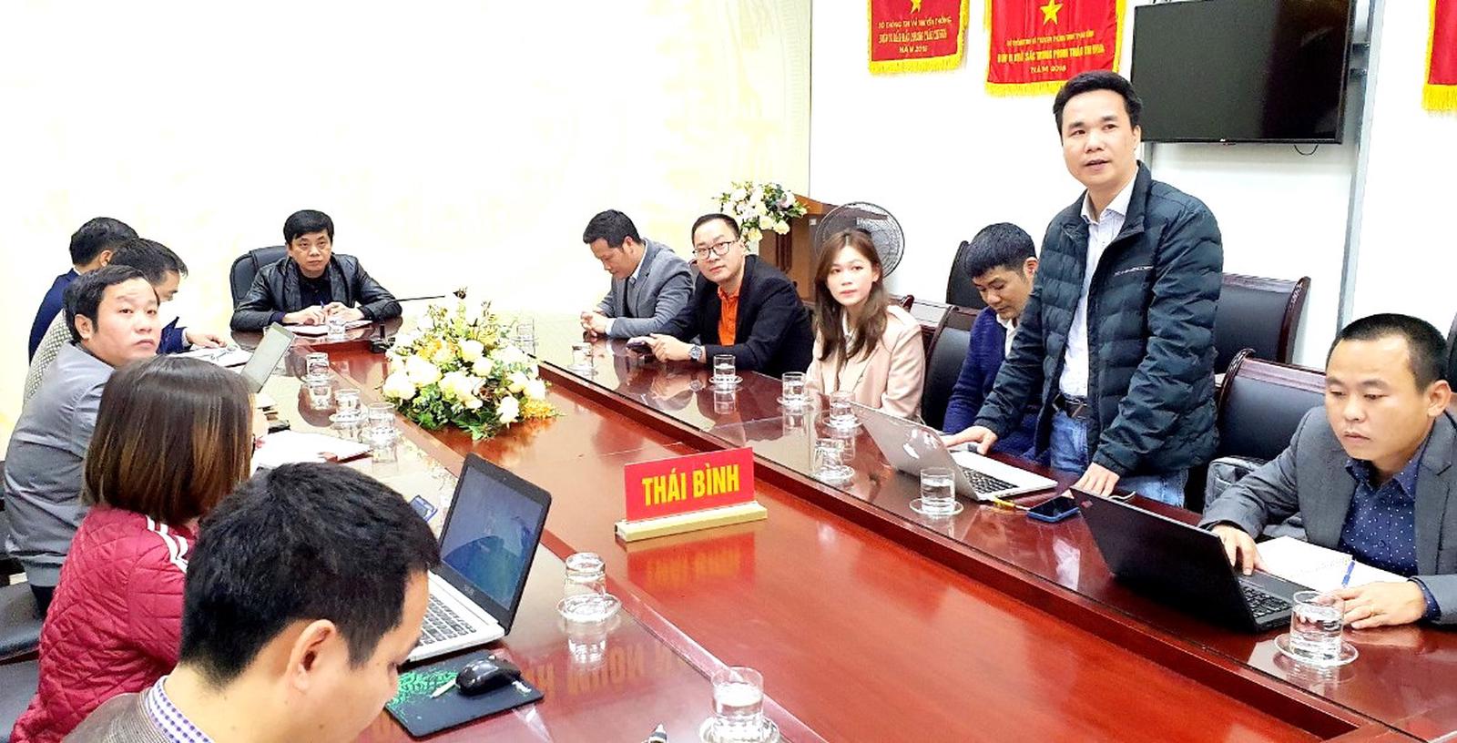 Thanh tra Sở TT&TT Thái Bình làm việc với Công ty CP FPT về thử nghiệm ứng dụng quản lý hạ tầng viễn thông thụ động. Ảnh: Trọng Tài