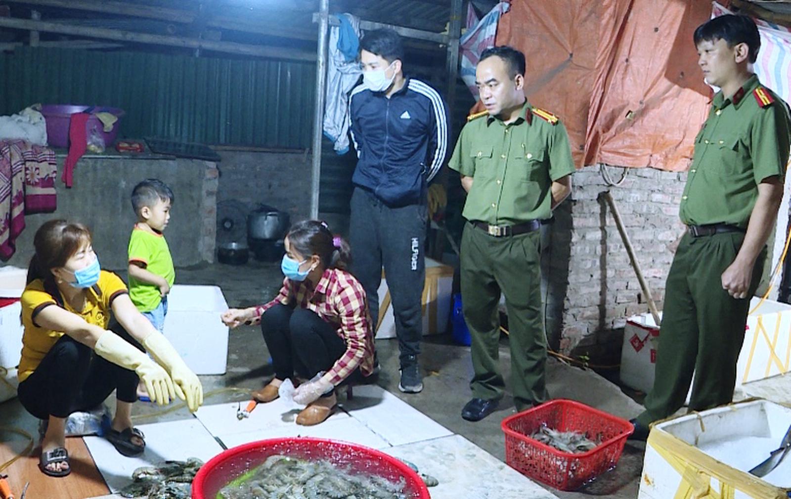 Thời điểm lực lượng chức năng ập vào kiểm tra (đêm 6/4), tại cơ sở này có 2 người đang thực hiện hành vi bơm tạp chất vào tôm.