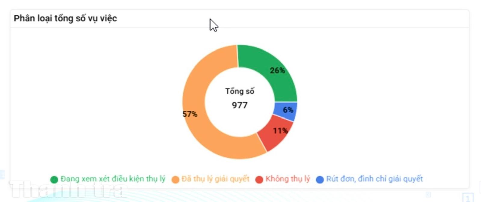 Thông qua các biểu đồ tổng hợp, cán bộ quản lý có thể nhanh chóng nắm bắt tình hình báo cáo của các đơn vị cũng như theo dõi các xu hướng nổi bật trong hoạt động thanh tra, giải quyết khiếu nại, tố cáo.