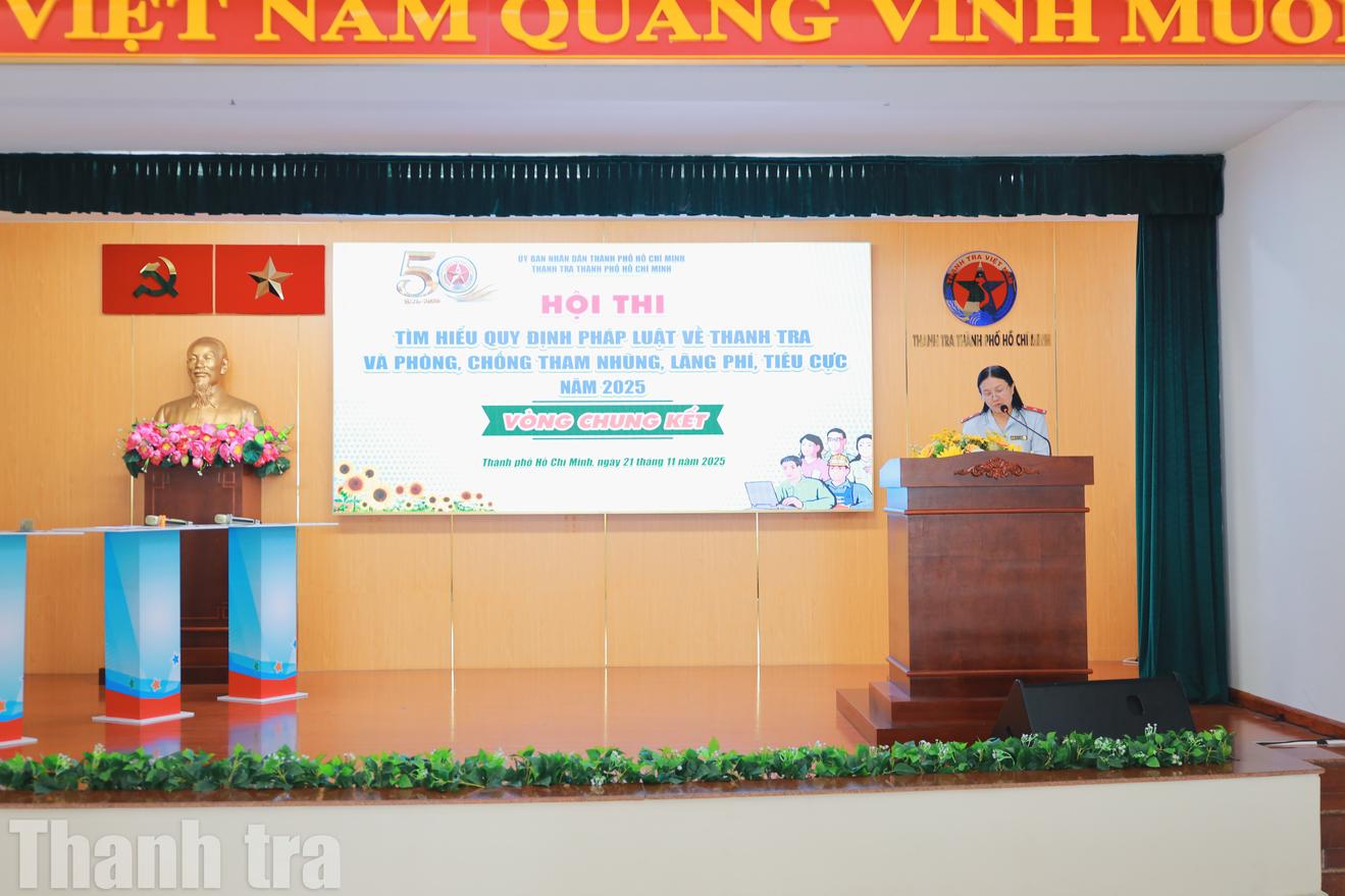 (Thanh tra) - Là một trong hoạt động ý nghĩa chào mừng Kỷ niệm 80 năm Ngày Truyền thống Thanh tra Việt Nam (23/11/1945-23/11/2025) và 50 năm thành lập Thanh tra Thành phố Hồ Chí Minh, sau hơn 2 tháng phát động, Hội thi “Tìm hiểu quy định pháp luật về thanh tra và phòng, chống tham nhũng, lãng phí, tiêu cực” năm 2025 của Thanh tra Thành phố Hồ Chí Minh đã diễn ra vòng chung kết, thành công rực rỡ.