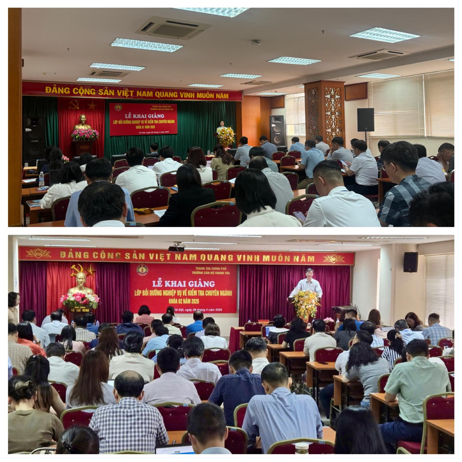 Các lớp Bồi dưỡng nghiệp vụ kiểm tra chuyên ngành Khóa 01 và Khóa 02 năm 2026 được tổ chức từ ngày 6 - 10/4 tại Trường Cán bộ Thanh tra, với sự tham gia của các học viên là cán bộ, công chức đang trực tiếp thực hiện nhiệm vụ kiểm tra chuyên ngành tại các bộ, ngành và địa phương.