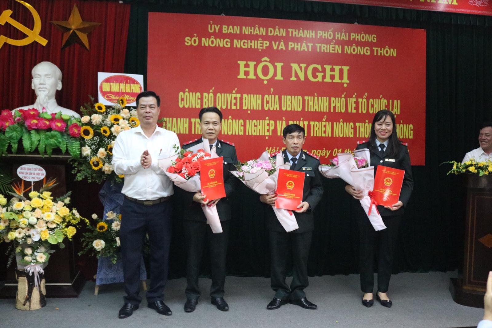 Tại hội nghị, Phó Chủ tịch UBND thành phố Nguyễn Văn Thọ vui mừng công bố quyết định của UBND thành phố về tổ chức lại Thanh tra Sở NN&PTNN Hải Phòng và trao quyết định bổ nhiệm quyền Chánh Thanh tra Sở NN&PTNN cho ông Vũ Văn Đốc, các đồng chí lãnh đạo của Thanh tra Sở tại Sở NN&PTNN.