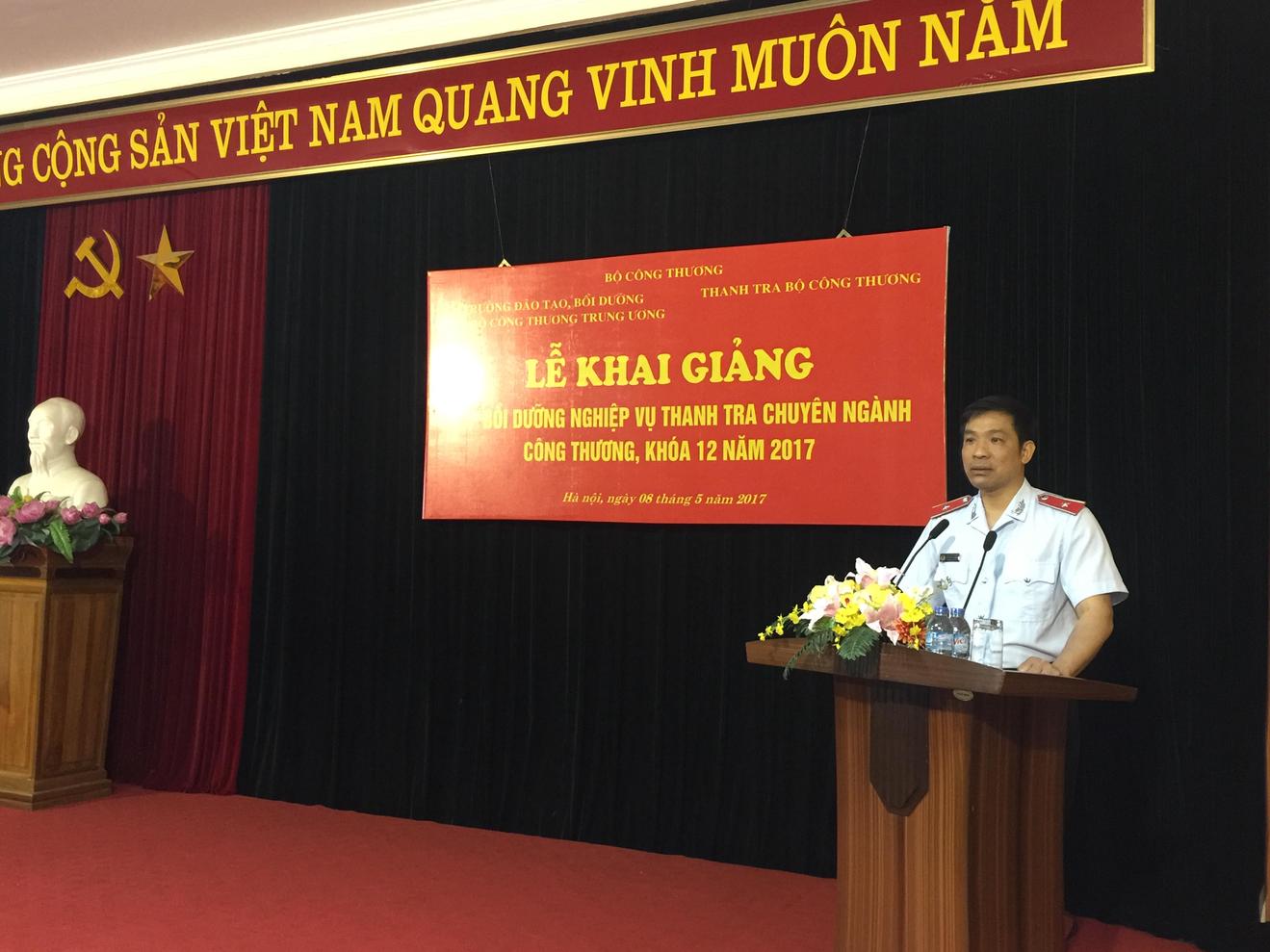 Chánh Thanh tra Bộ Công Thương Lê Việt Long phát biểu khai mạc lớp học. Ảnh: QĐ