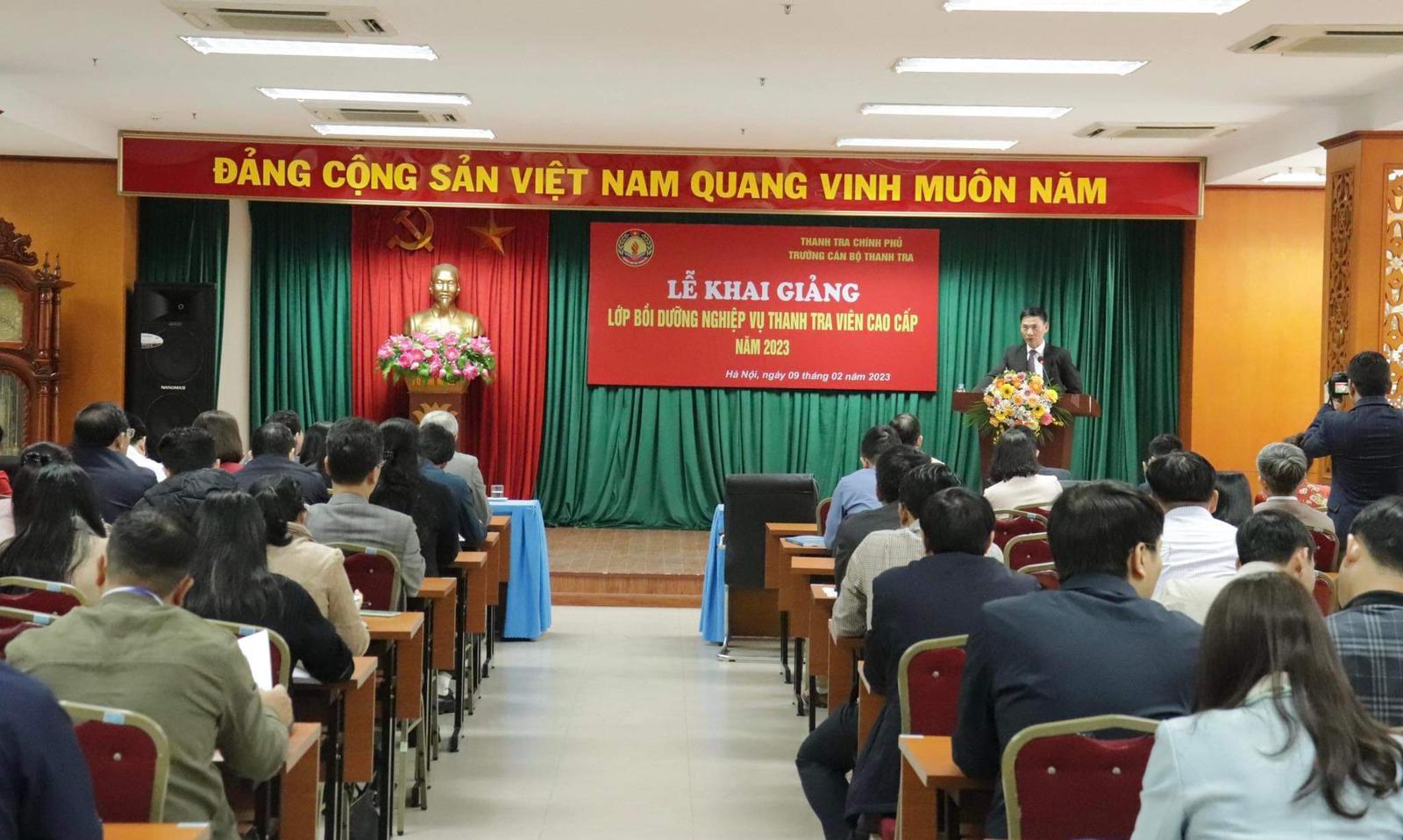 (Thanh tra) - Sáng 9/2, Trường Cán bộ Thanh tra khai giảng lớp bồi dưỡng nghiệp vụ thanh tra viên cao cấp năm 2023 cho hơn 70 học viên là cán bộ chủ chốt thuộc các bộ, ngành, tỉnh, thành phố trực thuộc Trung ương.