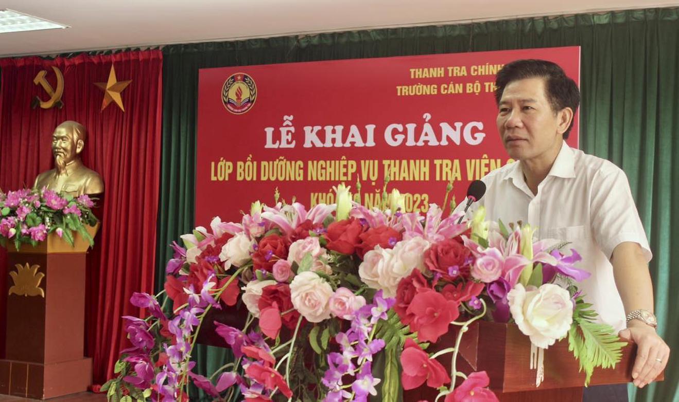 Ông Nguyễn Viết Thạch, Phó Hiệu trưởng Trường Cán bộ Thanh tra phát biểu khai giảng khoá học. Ảnh: Phương Anh