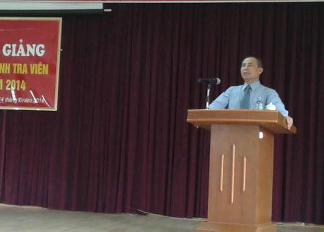 TS Ngô Mạnh Toan, Phó Hiệu trưởng phát biểu tại lễ khai giảng lớp thanh tra viên khóa 13/2014. Ảnh: Phương Anh