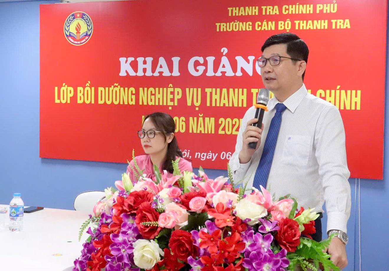 Thay mặt Ban Giám hiệu Trường Cán bộ Thanh tra, TS. Nguyễn Tuấn Khanh, Phó Hiệu trưởng nhà trường chúc mừng các học viên tham gia khoá học, đồng thời cho biết, trong thời gian học tập, các học viên sẽ được giảng viên của nhà trường, giảng viên kiêm chức giảng dạy, trao đổi 8 chuyên đề thuộc phần kiến thức chung, 10 chuyên đề thuộc phần kỹ năng nghiệp vụ và tham gia thực hành các tình huống giả định liên quan đến nghiệp vụ thanh tra, tiếp công dân, giải quyết khiếu nại, tố cáo và phòng, chống, tham nhũng, tiêu cực.