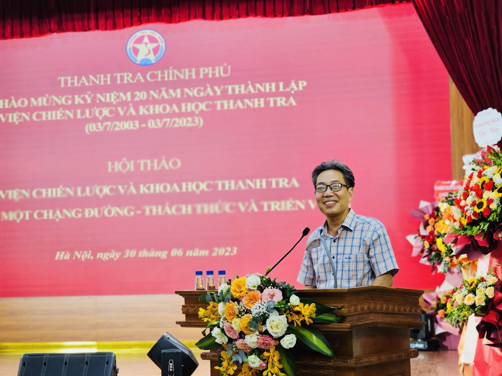 Phát biểu tại hội thảo, Phó Tổng Thanh tra Trần Ngọc Liêm gửi lời chúc mừng tới toàn thể cán bộ, viên chức Viện CL&KHTT và các nguyên là cán bộ Viện CL&KHTT nhân dịp 20 năm thành lập. Đồng thời ghi nhận, biểu dương và hoan nghênh những đóng góp của Viện CL&KHTT về kết quả các công trình nghiên cứu về lĩnh vực thanh tra.