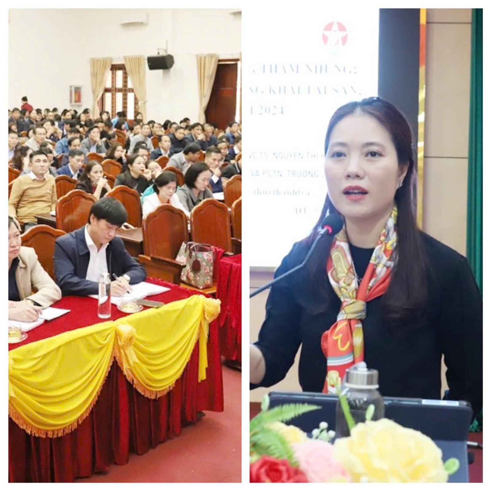 Tiến sỹ Nguyễn Thị Hồng Thúy (Trường Cán bộ Thanh tra) hướng dẫn kê khai tài sản tại Hà Tĩnh. Ảnh: BHT