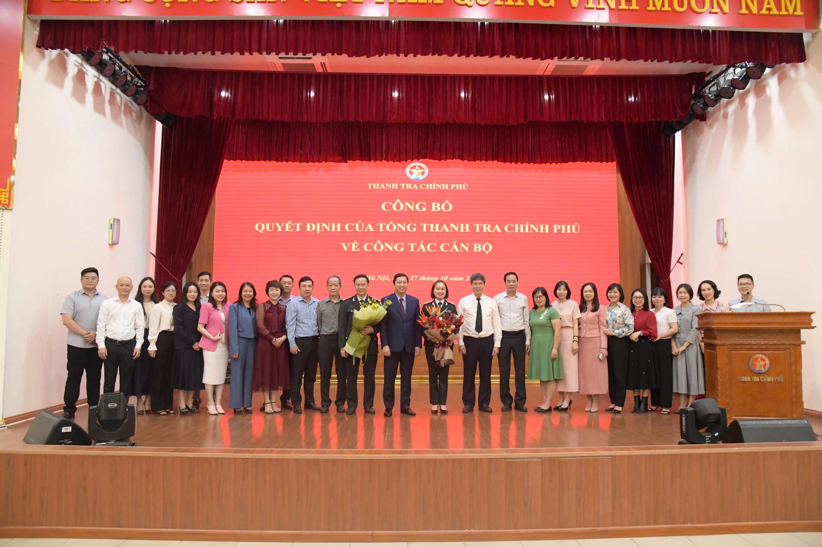 Phó Tổng Thanh tra Dương Quốc Huy chụp ảnh lưu niệm tại Lễ công bố quyết định của Tổng Thanh tra Chính phủ về công tác cán bộ của Vụ Tổ chức cán bộ. Ảnh: BTT