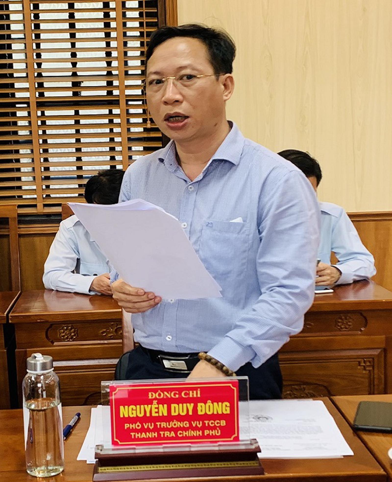 Ông Nguyễn Duy Đông, Phó Vụ trưởng Vụ Tổ chức cán bộ, Thanh tra Chính phủ phát biểu tại hội nghị. Ảnh: TQ