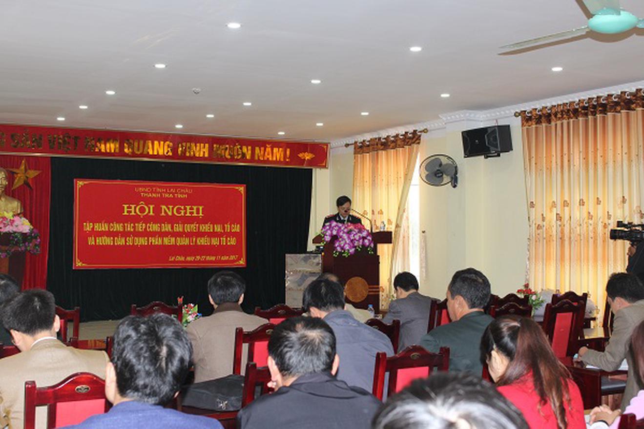 Ông Nguyễn Thanh Trì, Phó Chánh Thanh tra tỉnh Lai Châu phát biểu tại hội nghị tập huấn công tác tiếp công dân, giải quyết đơn thư KN,TC. Ảnh: Bùi Bình