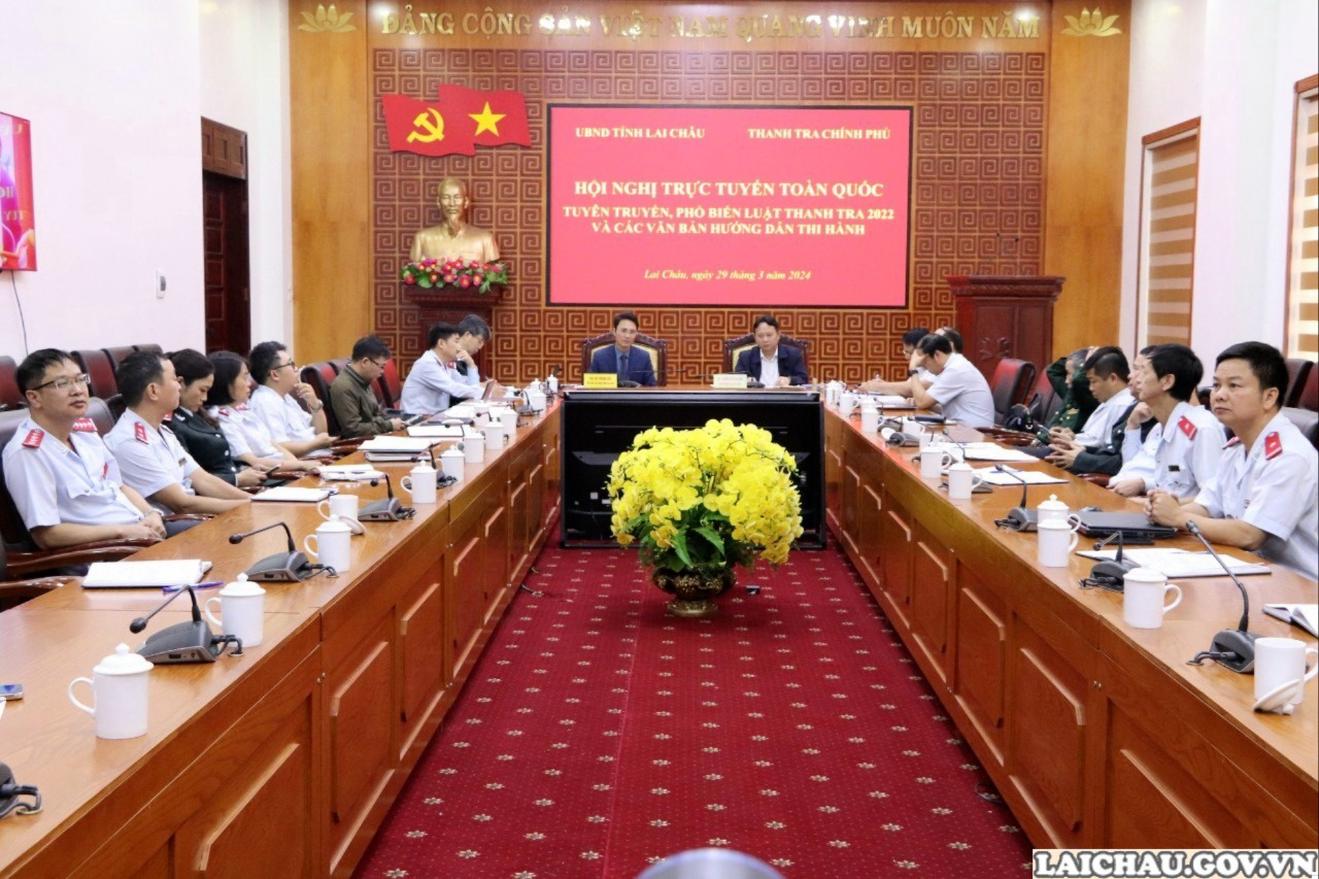 Lai Châu dự Hội nghị trực tuyến toàn quốc tuyên truyền, phổ biến Luật Thanh tra 2022 và các văn bản hướng dẫn thi hành. Ảnh: Thu Hoài