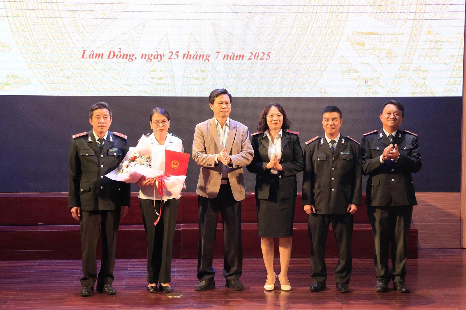 Đồng chí Hoàng Xuân Hường, Phó Bí thư Đảng ủy UBND tỉnh Lâm Đồng trao quyết định và tặng hoa cho Ban Chấp hành Đảng bộ Thanh tra tỉnh Lâm Đồng. Ảnh: CTV