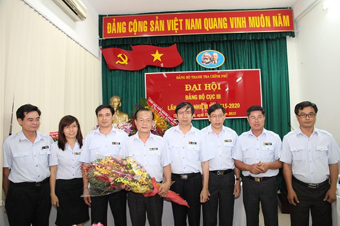 Phó Tổng Thanh tra Chính phủ Lê Tiến Hào tặng hoa chúc mừng thành công Đại hội Đảng bộ Cục III, nhiệm kỳ 2015 - 2020. Ảnh: NG