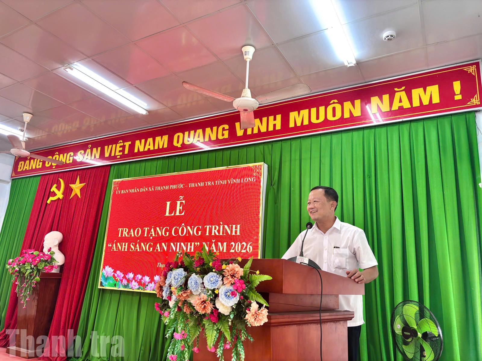 Phát biểu tại lễ trao tặng, ông Phạm Minh Hoà, Phó Chánh Thanh tra tỉnh Vĩnh Long nhấn mạnh, bên cạnh chức năng quản lý Nhà nước, ngành Thanh tra luôn ý thức trách nhiệm xã hội, hướng về cơ sở, đồng hành cùng người dân. “Ánh sáng an ninh” không chỉ là những trụ đèn chiếu sáng đường quê, mà còn là biểu tượng của niềm tin, của sự quan tâm từ các cơ quan Nhà nước đối với đời sống Nhân dân.