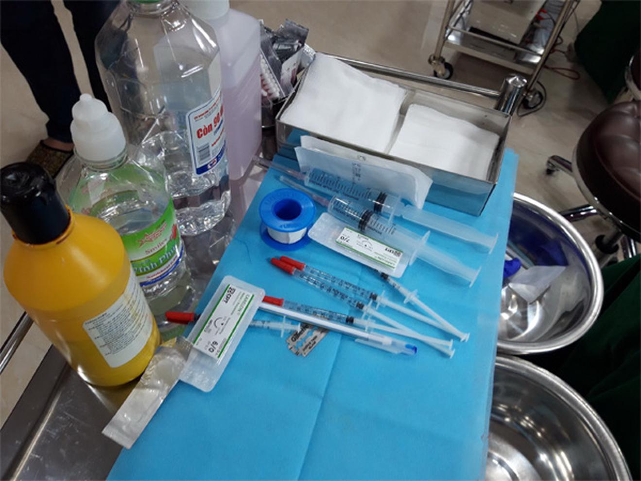 Thuốc và dụng cụ y tế chưa rõ nguồn gốc bị phát hiện tại cơ sở. Ảnh: SYT
