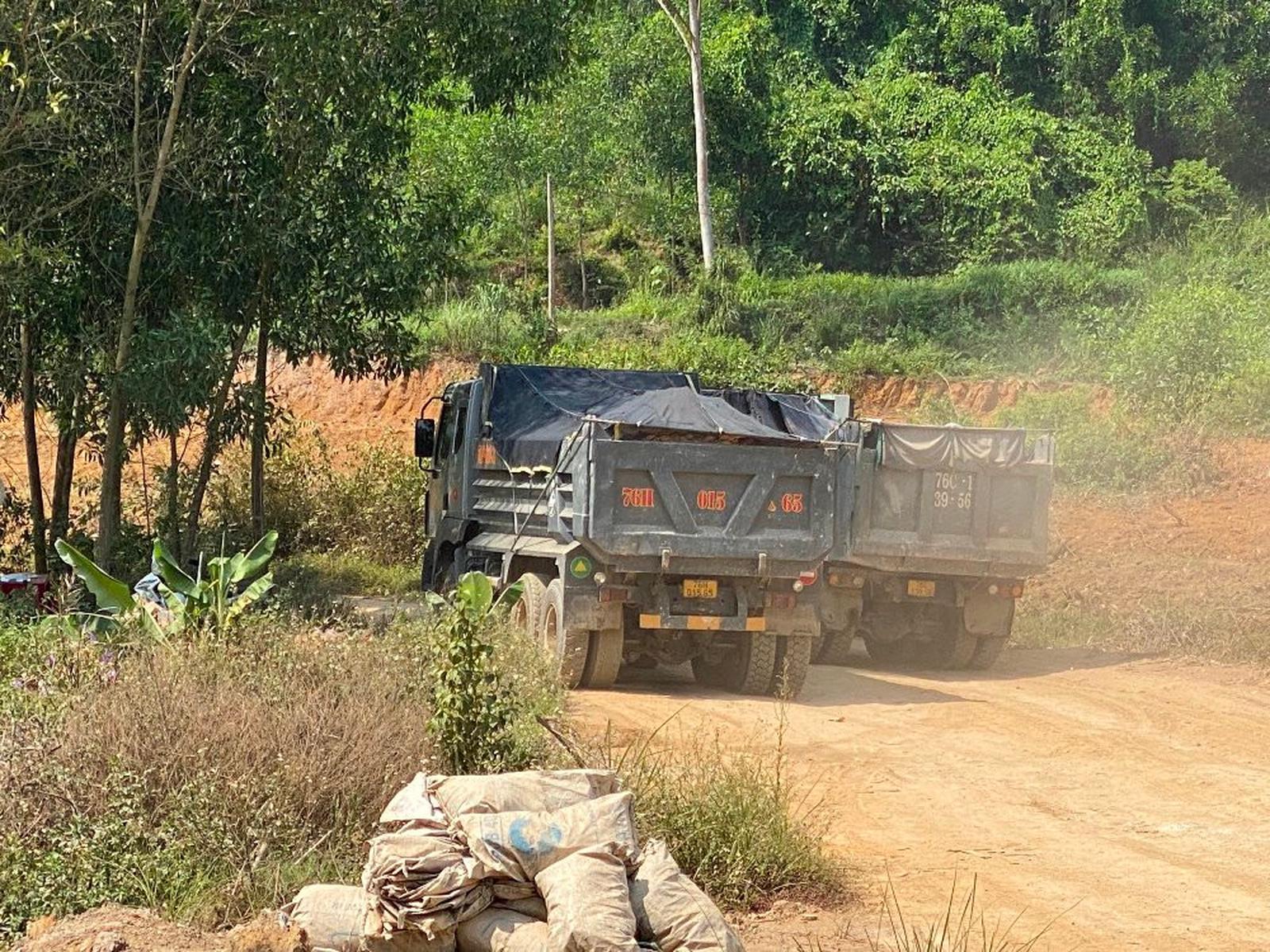 Xe vận chuyển đất san lấp mặt bằng tại dự án khu dân cư kè Bắc sông Trà Bồng. Ảnh: N.P